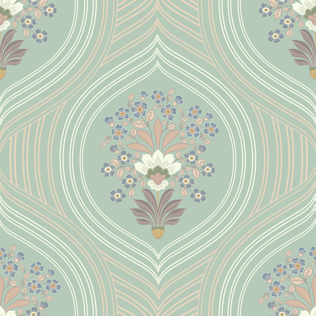 Elegant curved line wall mural design