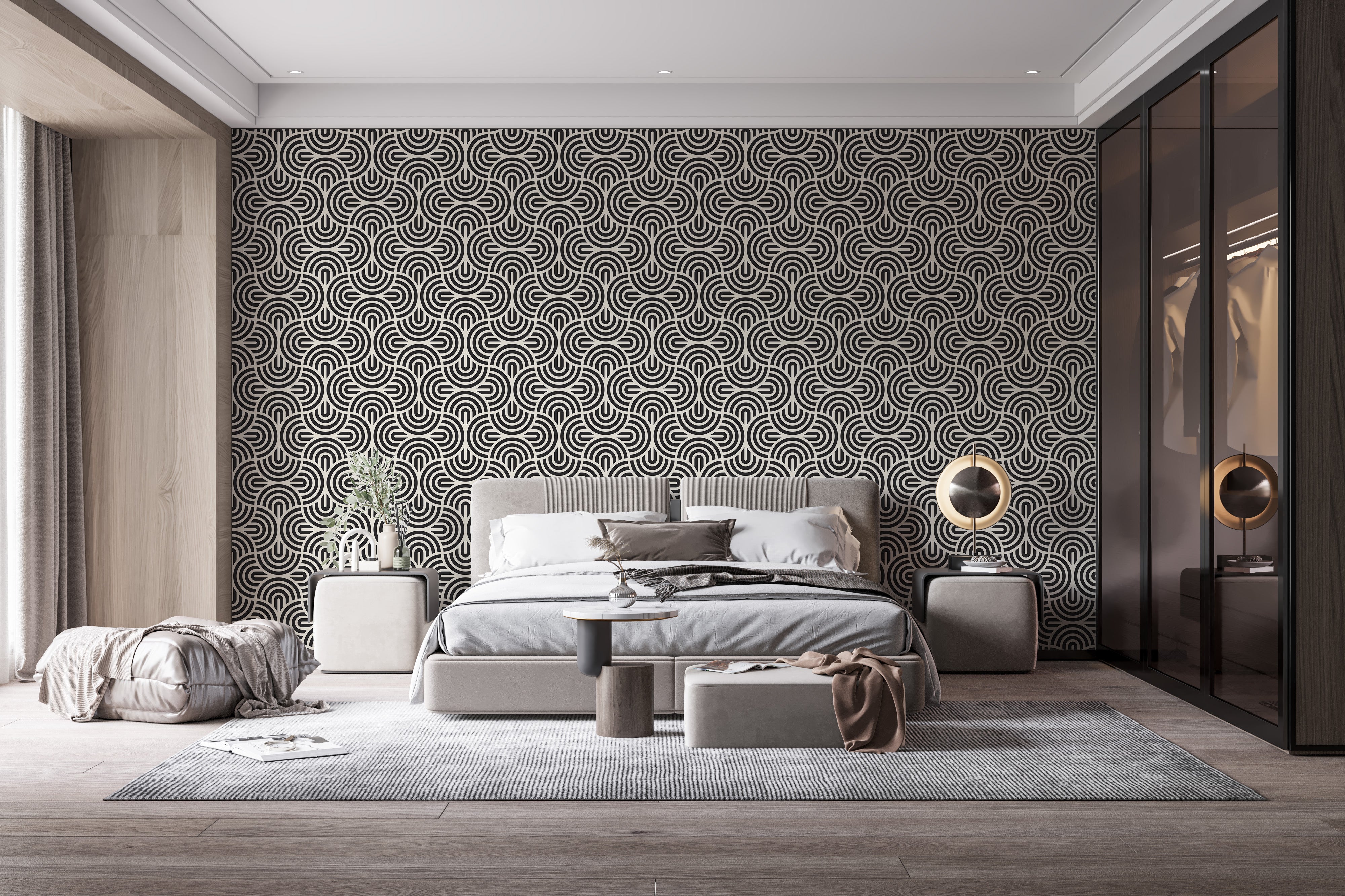 Contemporary striped design mural in black