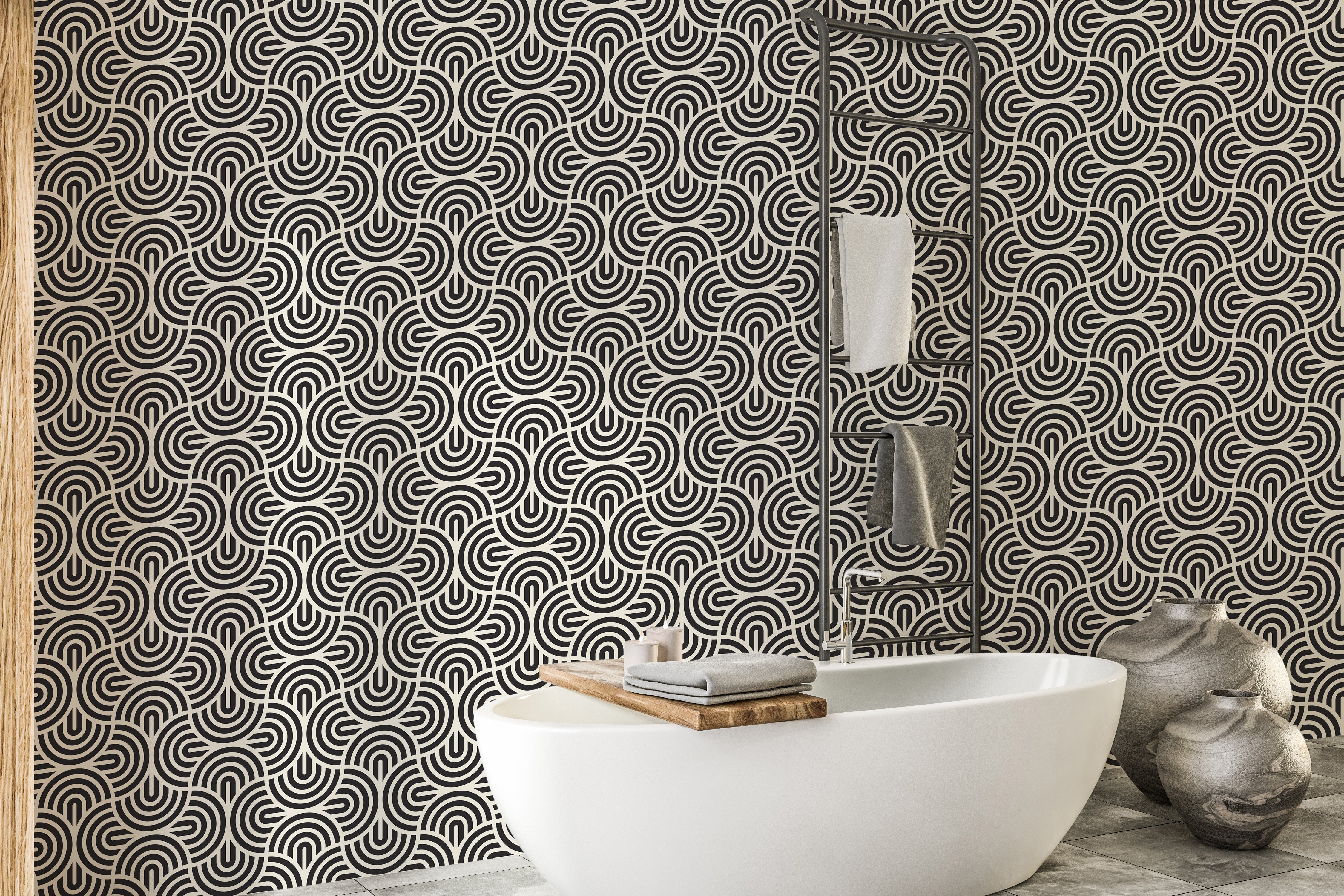 Black and white striped wallpaper with curves