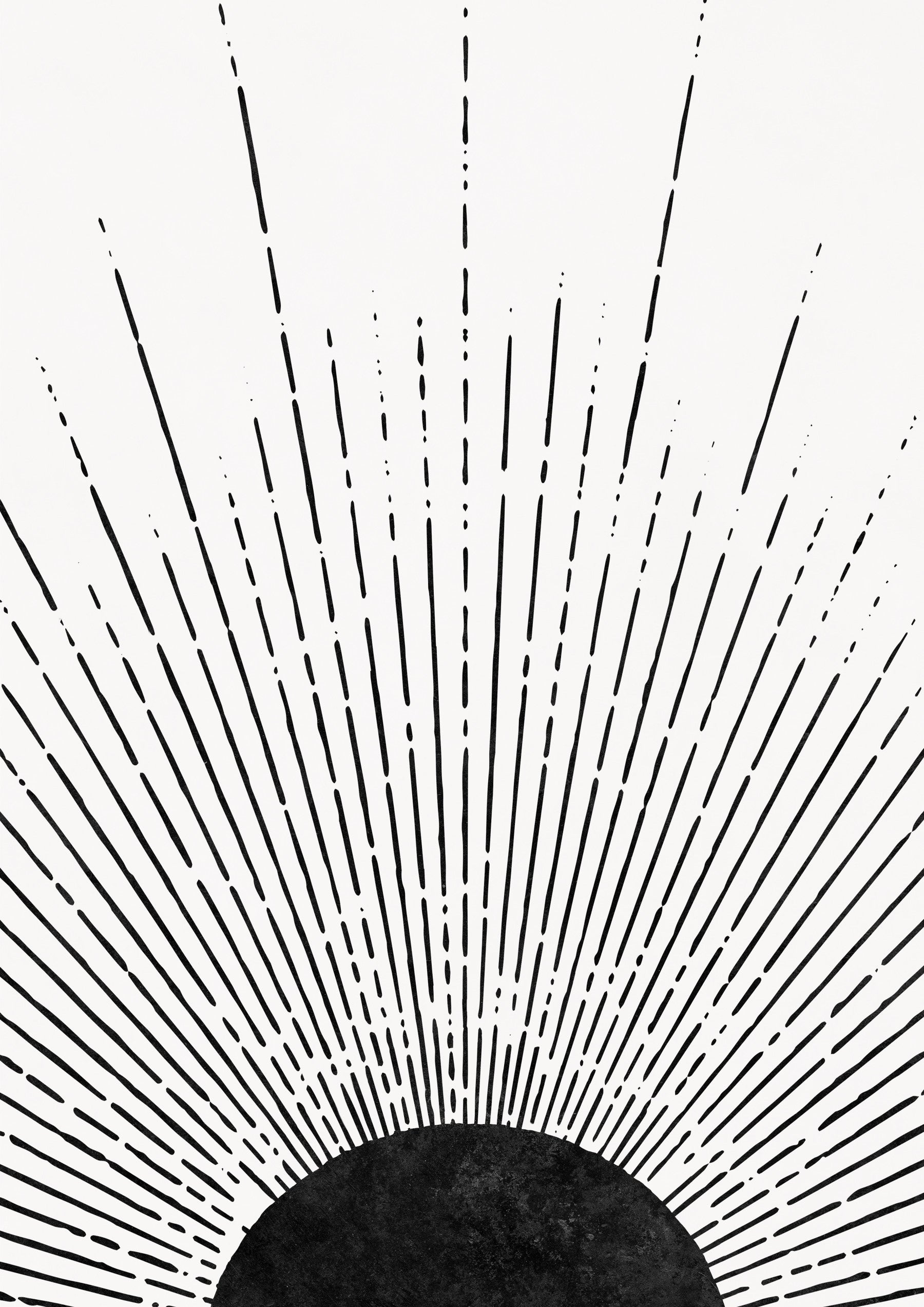 This wallpaper showcases a powerful and simple design. The black sun rays against a crisp white backdrop creates a dramatic yet minimalist feel. The bold lines and textured center add depth and visual interest. Its modern aesthetic is versatile enough for various spaces, from a living room to a home office. Perfect for those who love graphic designs and want to add a touch of modern drama to their interiors. The graphic simplicity and contrasting colors make it a striking focal point or subtle accent.
