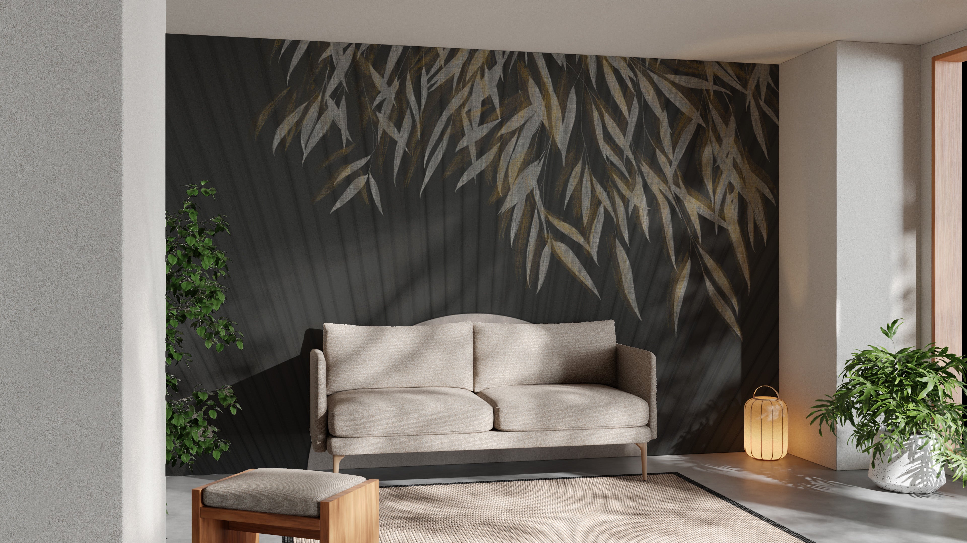 Black textured wallpaper with golden botanical leaves creates a sophisticated and bold design. Delicate golden foliage on a textured black background adds a refined statement to any interior. The subtle details of the wallpaper make it ideal for use in bedrooms, living rooms, or offices as a modern addition to walls. The perfect choice for contemporary interiors, this wallpaper will be an adaptable solution for creating a showpiece wall feature. Order now and get free shipping on your black textured wallpaper with golden botanical leaves.