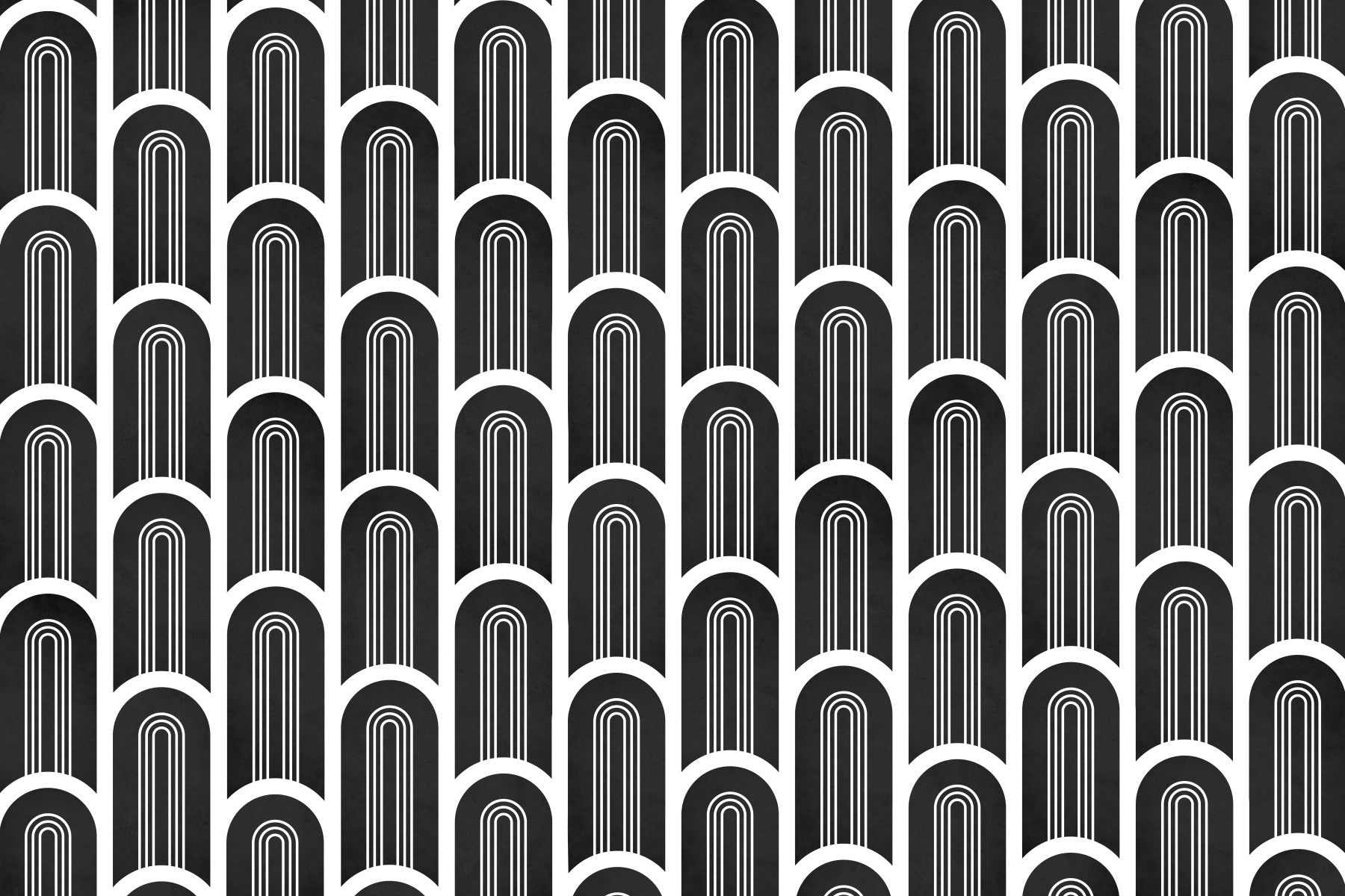 Step back in time with our Black & White Art Deco Arches wallpaper, a sophisticated tribute to the glamorous era of the Art Deco. This stunning design features a mesmerizing pattern of repeating arches, rendered in a timeless monochrome palette that exudes elegance and style. The bold geometric shapes, characteristic of Art Deco, create a visually striking effect that adds depth and dimension to any space. Each arch is meticulously crafted with clean lines and precise curves, showcasing the attention to detail that defines this iconic art movement. Perfect for creating a statement wall or adding a touch of vintage charm to your décor, this wallpaper seamlessly blends classic design with modern sensibility. Transform your living room, bedroom, or office into a haven of refined taste with this captivating wallpaper that captures the essence of Art Deco artistry.