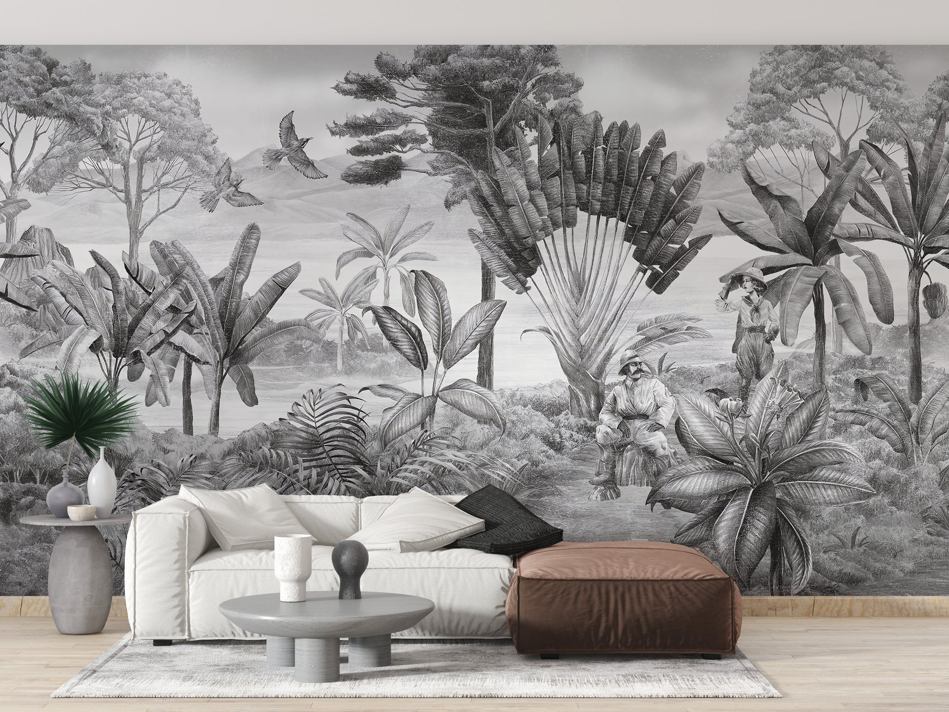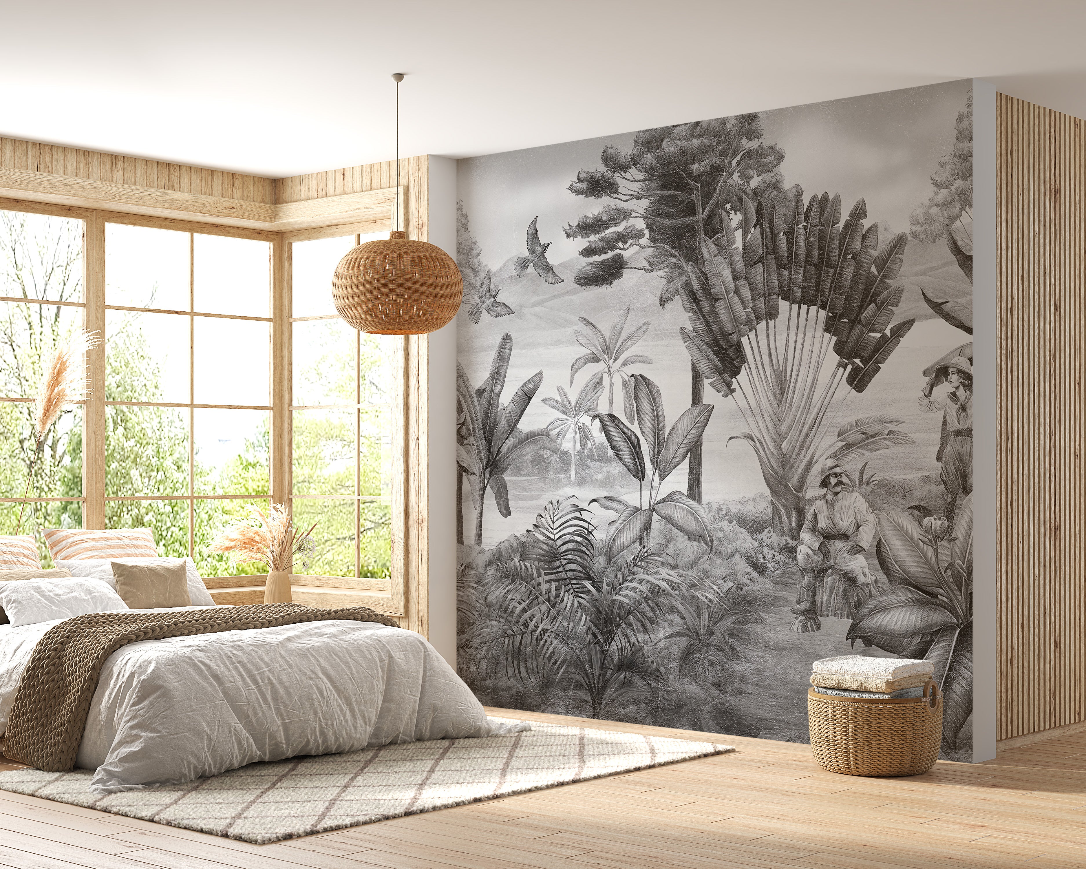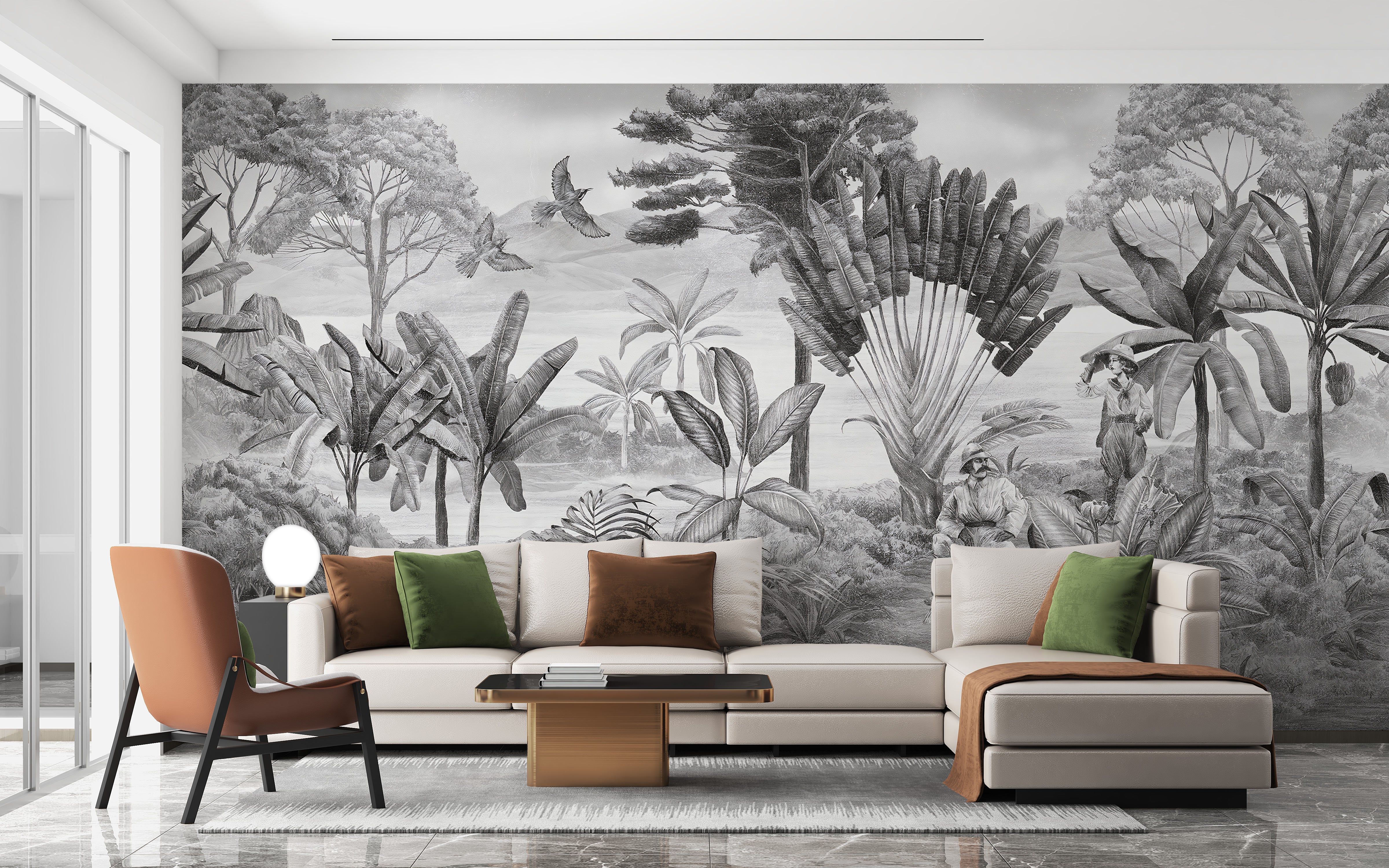 Elegant black and white scenery mural design