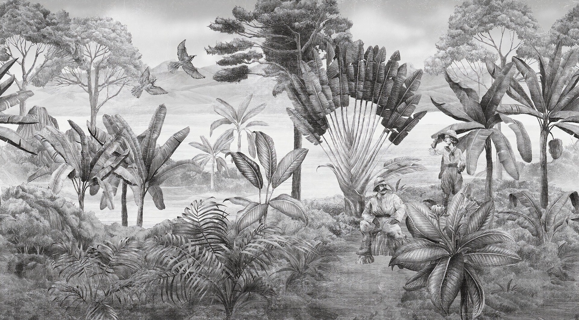 Scenic black and white wallpaper mural for walls