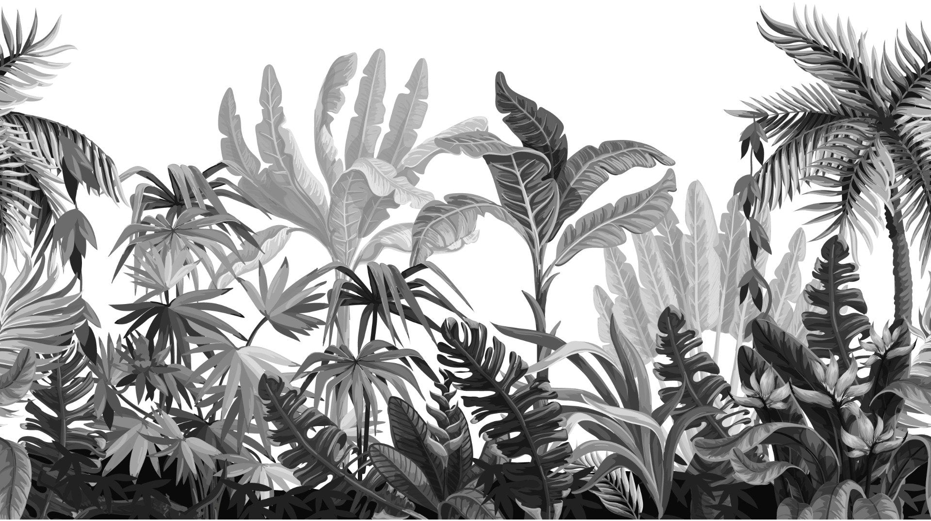 Tropical-inspired monochrome mural for sleek interiors