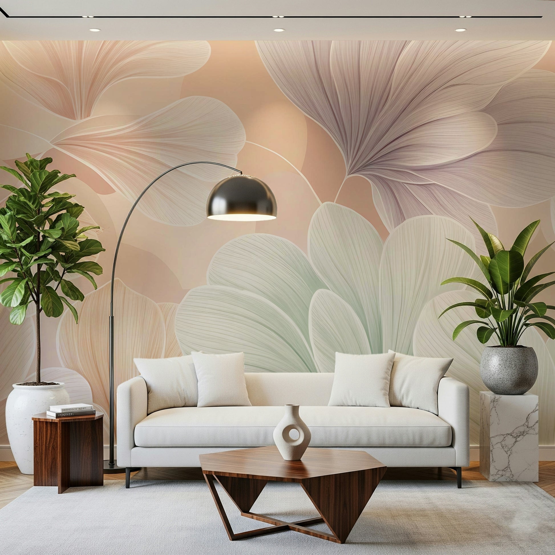 Introduce soft sophistication with this floral wallpaper for walls. Its large-scale blossoms present a calming, painterly aesthetic. Gentle lines define the petals, creating a fluid, elegant design. The neutral palette of blush, beige, and soft green offers versatile coordination with diverse interior styles. This wall décor enhances bedrooms, living rooms, or hallways, adding a touch of serene luxury. Transform your space into a tranquil retreat with this calming floral pattern. This wallcovering will deliver a light, refined ambiance in any home.