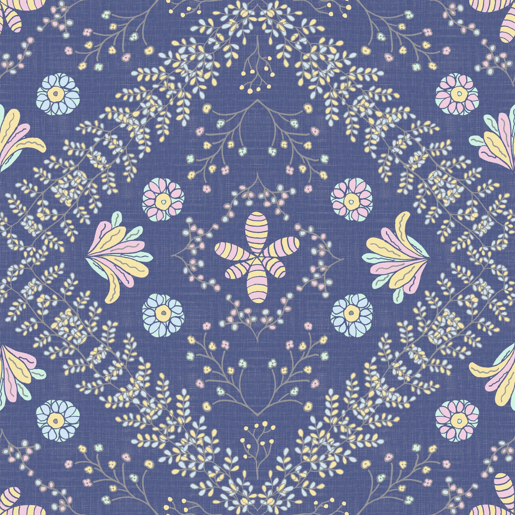 Decorate your space with the charming, vintage feel of our Bloom Tapestry Deep Blue Wallpaper. This beautiful mural wallpaper features a repeating floral tapestry design on a rich deep blue background. The delicate pattern, with its muted pastel tones of pink, yellow, and light blue, gives your walls a gentle and peaceful yet slightly dramatic look. It's the perfect wallpaper for walls in a bedroom, study, or cozy living room, offering a touch of rustic elegance with a bolder hue.