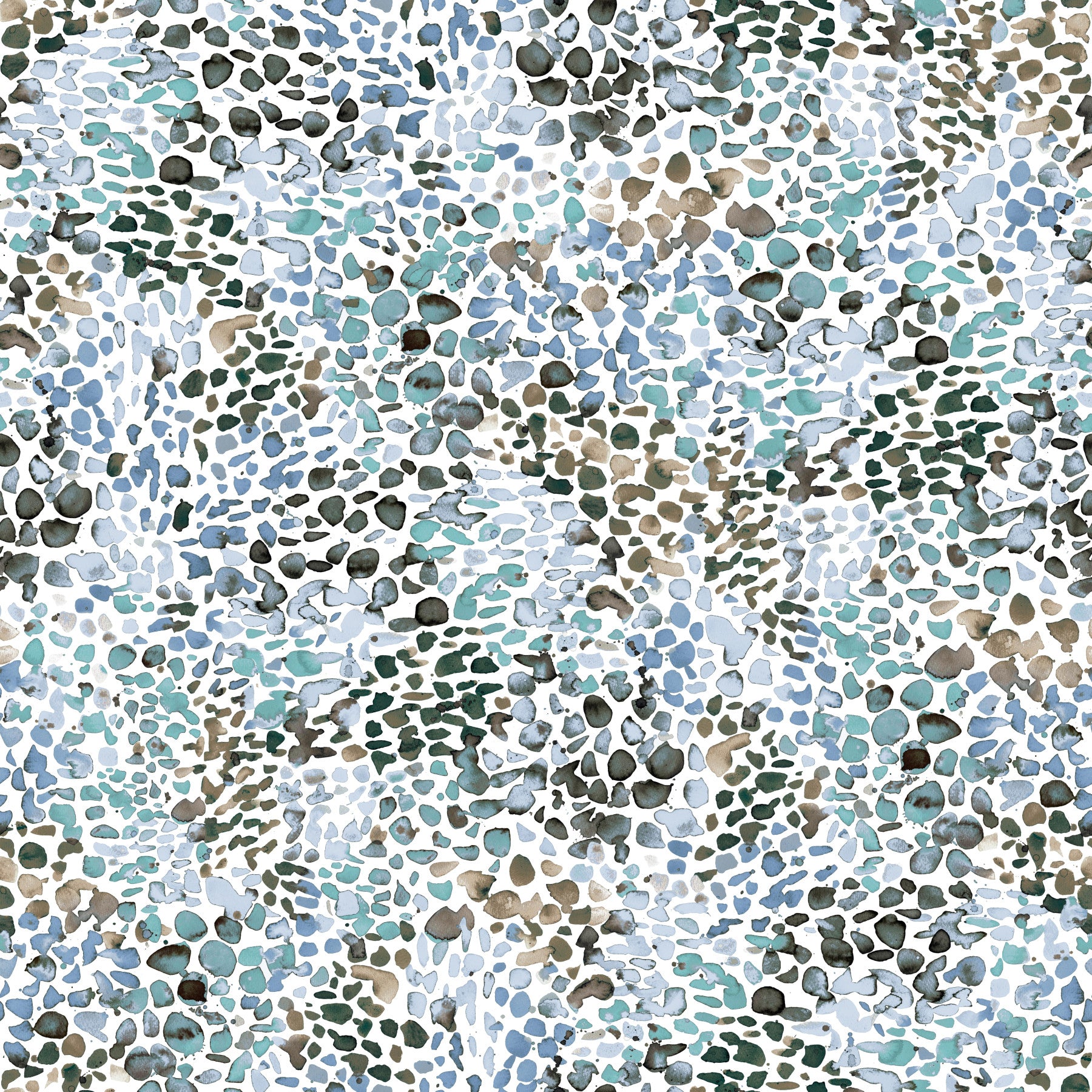 Dive into serenity with this "Blue Abstract Watercolor" wallpaper. A captivating blend of blues, greens, and taupes creates a mesmerizing, organic pattern. Loosely rendered watercolor shapes, resembling pebbles or abstract organic forms, dance across a crisp white background. The effect is both calming and invigorating, offering a sophisticated yet playful aesthetic perfect for modern homes or offices. Experience the fluidity and artistry of watercolor in this uniquely textured digital wallpaper, adding a touch of natural elegance to your digital space.