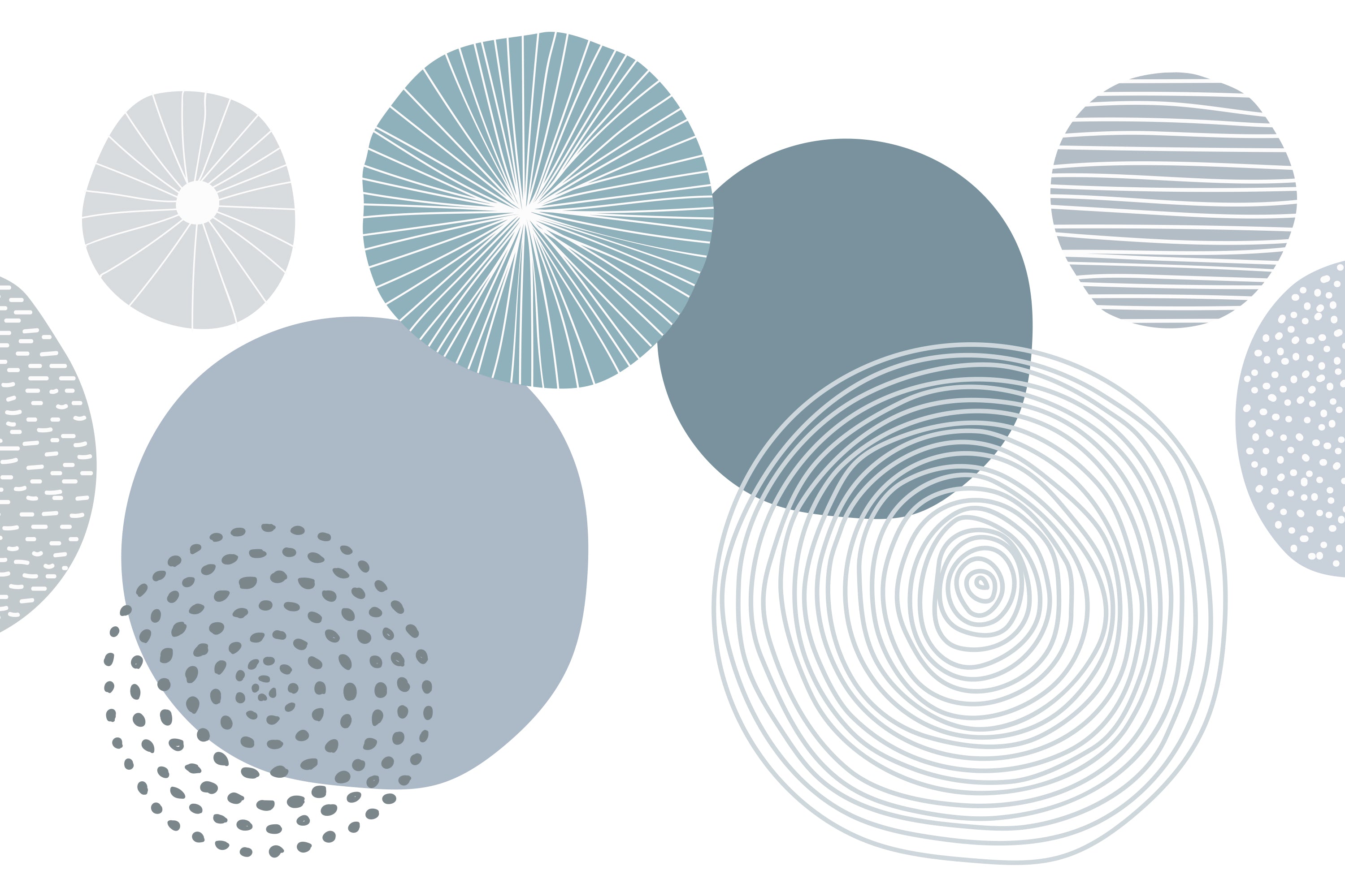 Stylish wallpaper featuring various shades of blue in circular forms.