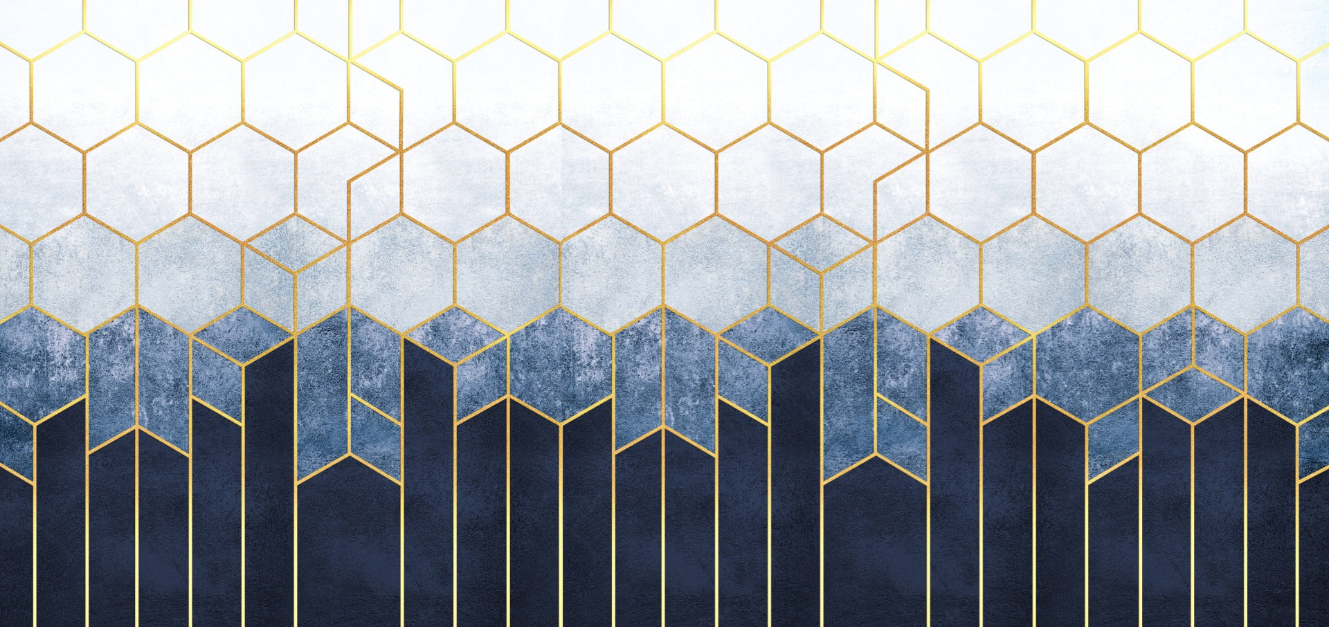 Geometric blue and gold hexagonal pattern mural