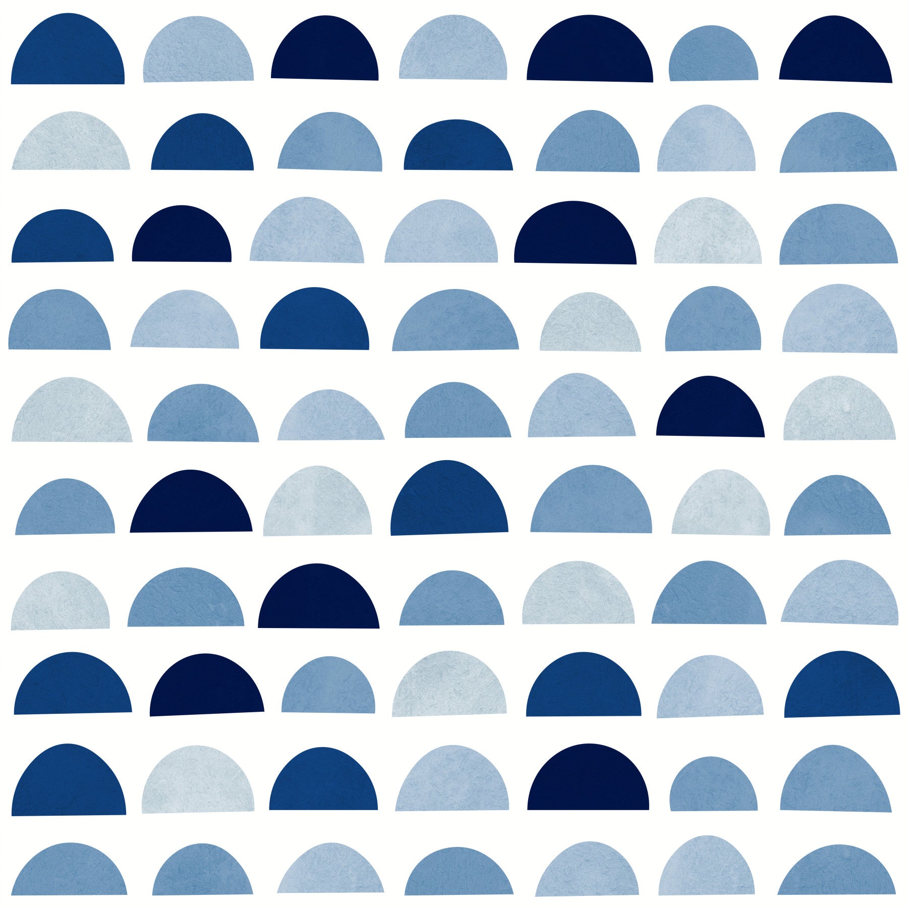 This wallpaper features a playful pattern of layered half-moon shapes in various shades of blue. The design uses simple shapes that are aesthetically pleasing to the eye. The texture gives it a unique feel. It's suitable for a variety of rooms but it is perfect for a child's room. This wallpaper for walls brings a calm yet stylish touch to any space. It is great for creating a cheerful ambiance.