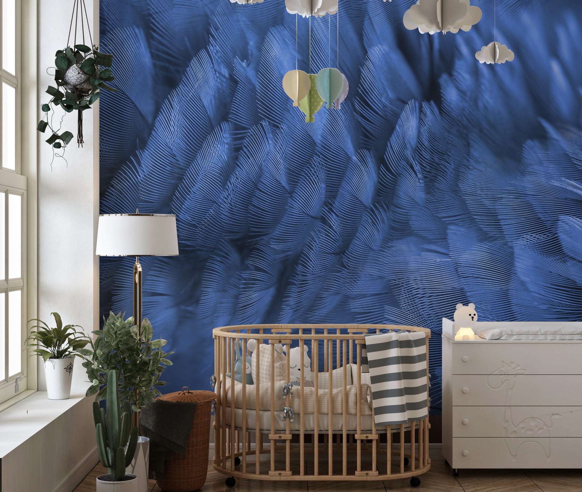Favored for its stunning visual appeal and the lively atmosphere it creates, this blue feather wallpaper mural is embraced by those seeking to infuse their spaces with the vibrancy of tropical wildlife. Easy to install, it offers decorators, homeowners, and property managers a transformative decor solution that captivates and inspires, making any room stand out.