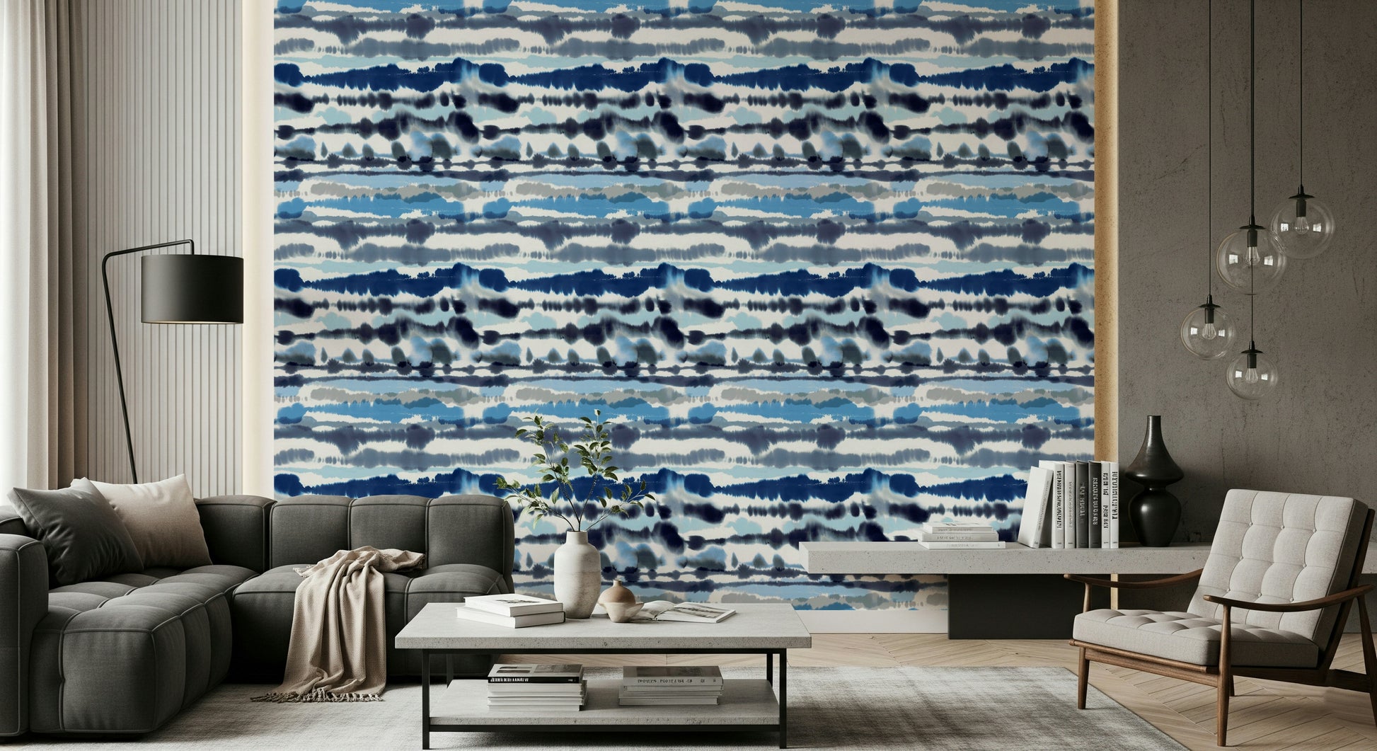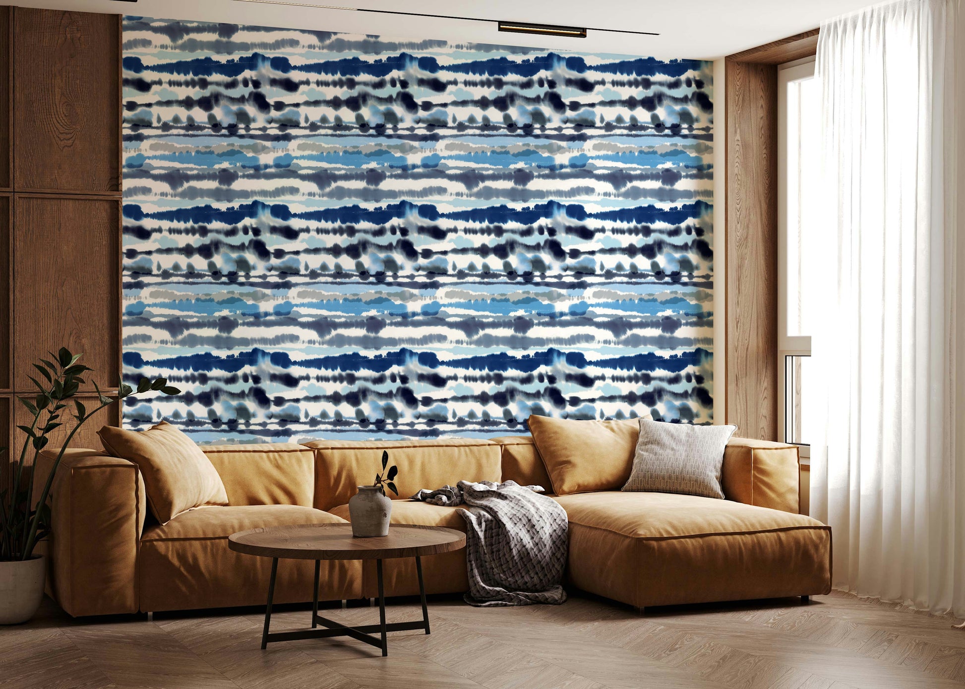 Transform your living spaces with this captivating wallpaper for walls. The fluid, horizontal strokes of blues and greys evoke a sense of calm and movement, reminiscent of gentle ocean tides. This design brings an airy, sophisticated touch to any room. The cool colour palette makes it a superb choice for bedrooms, bathrooms, or any space where you want to create a serene, relaxing atmosphere. Elevate your home décor and immerse yourself in the tranquil beauty of this design. It will complement your interior spaces, lending a contemporary and artistic edge.