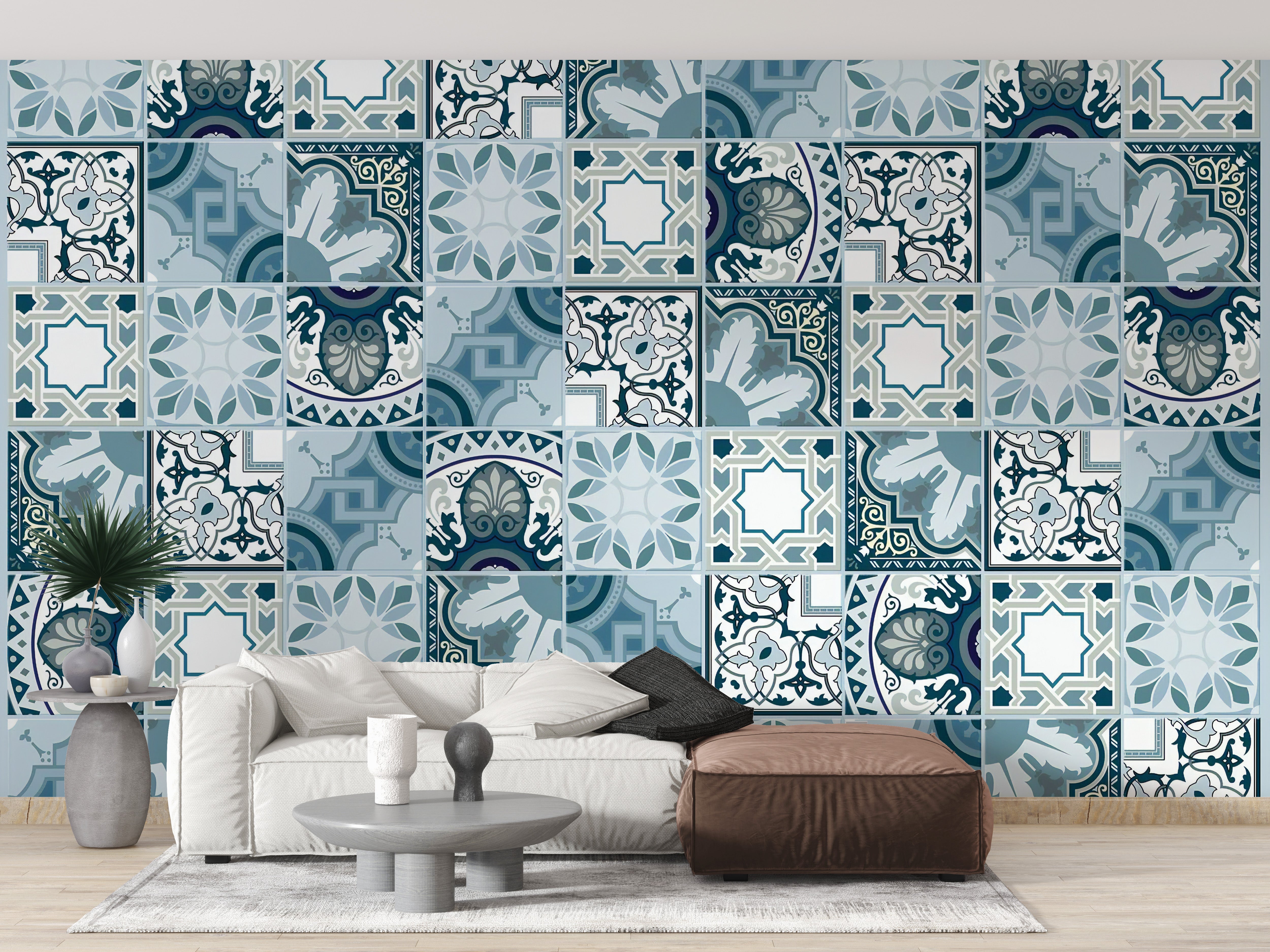 Transform your home by bringing the soothing feel of the sea indoors with the blue marine mosaic tile wallpaper. This design is inspired by Mediterranean tiles and includes intricate blue mosaic patterns that resemble handcrafted ceramic art. Crafted with a peel and stick backing, the wallpaper is effortless to install and reposition, making it ideal for renters and DIY decorators alike. Fill any wall space with this mosaic tile effect wallpaper to create a coastal aesthetic, whether it be in a bathroom or kitchen; doing so will require minimal effort on your end.