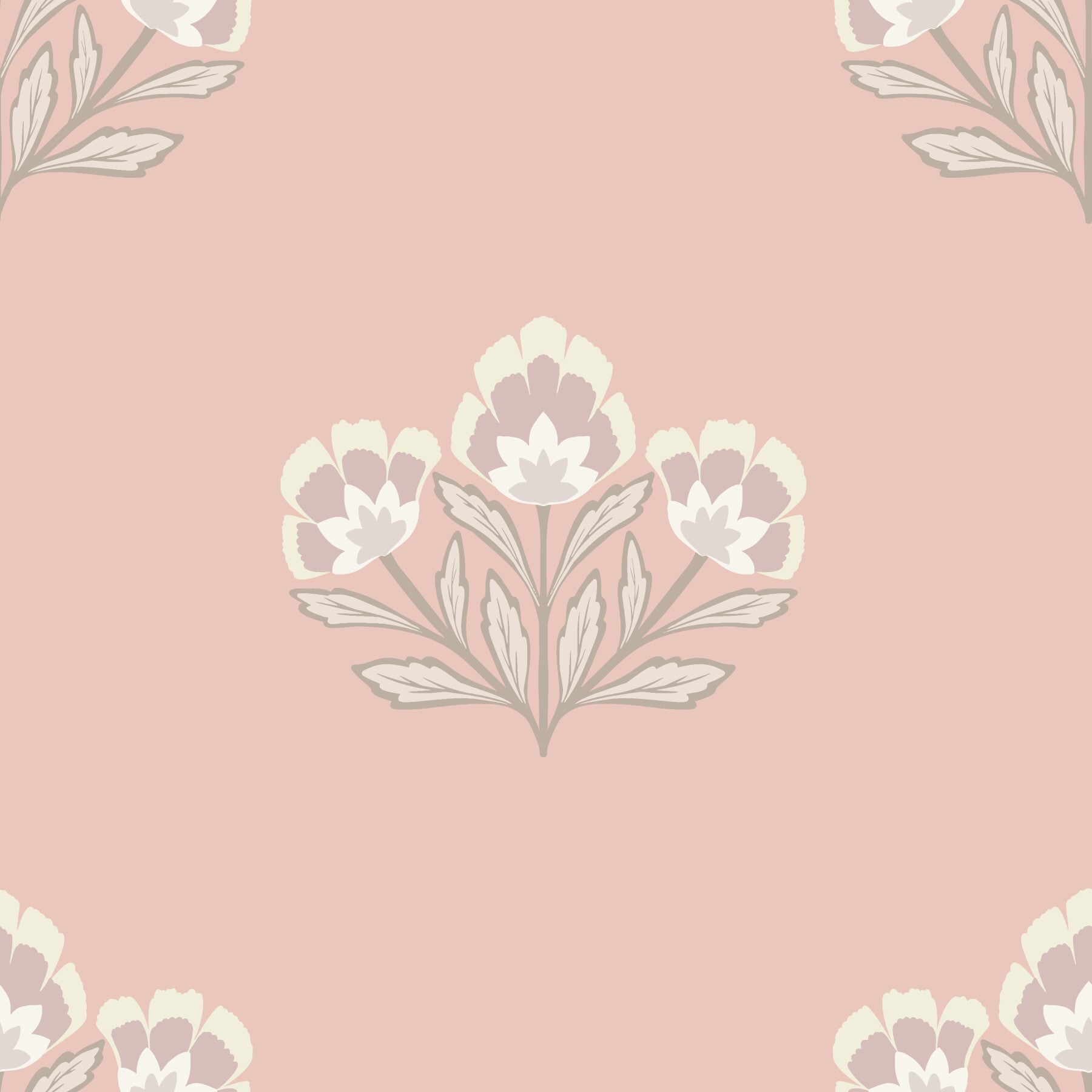 Blush Blooms wallpaper, charming pink background, elegant floral motif illustration.