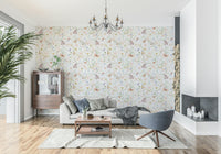 Bring the serenity of a blossoming meadow indoors with this delicate floral wallpaper for walls. Gentle watercolours create a seamless pattern of wildflowers, butterflies, and dragonflies. The soft pinks, blues, yellows, and greens against a clean white background offer a light and airy feel. This design complements interiors by adding a touch of nature and elegance to bedrooms, nurseries, living rooms, or dining areas. Transform your space with the charm of a sun-kissed field and create a tranquil atmosphere.