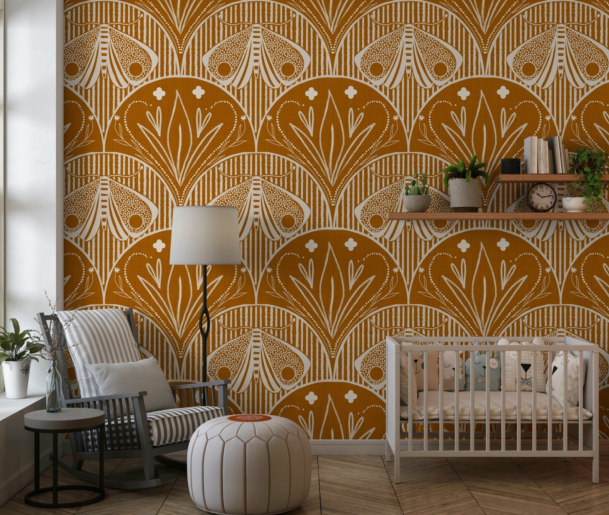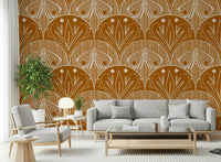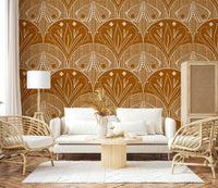 Boho Art Nouveau Scallop Butterfly Floral in Burnt Orange Wallpaper⁠