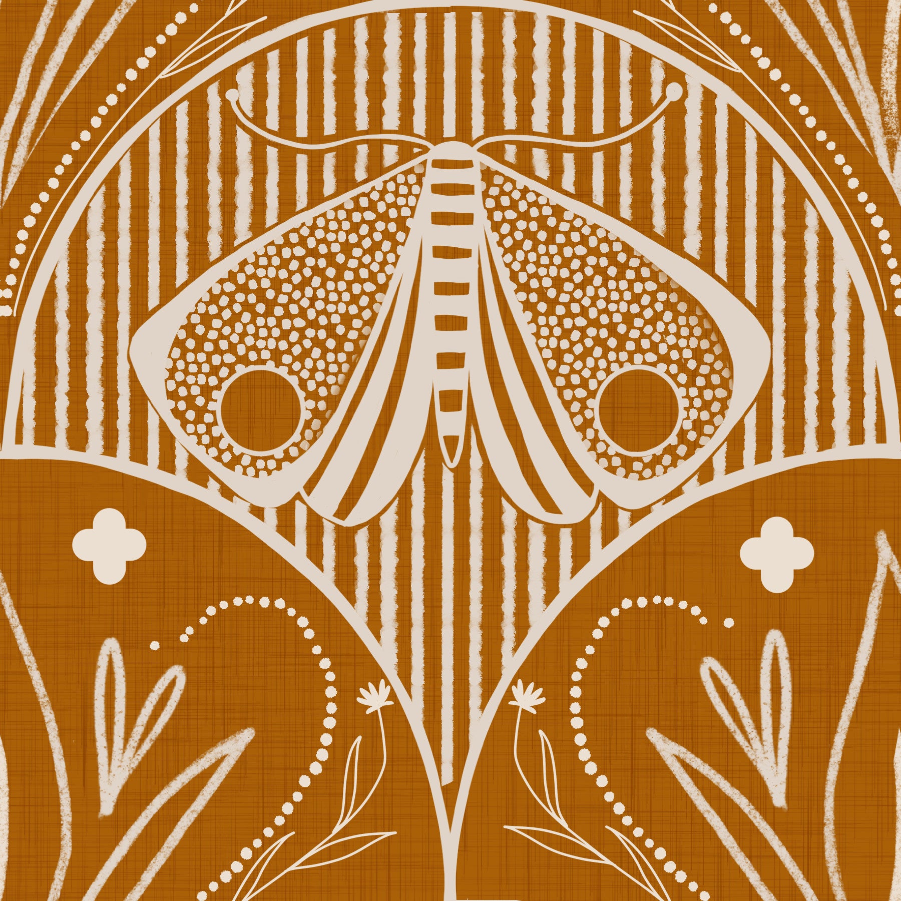 Imagine escaping into a sun-drenched, tropical paradise with the vibrant feel of the Scallop Butterfly Floral in Burnt Orange. This design blends the elegance of Boho Art Nouveau with a boldly stylized aesthetic. Featuring a prominent moth motif and delicate, abstracted floral sprigs, this pattern creates a captivating focal point in a rich, warm hue. Available as durable wallpaper for walls or as easy, convenient peel and stick wallpaper, upgrading your space is simple. For a truly immersive, grand statement, select the expansive wallpaper mural option. Introduce this beautiful, artistic pattern into your home and create your personal, tranquil escape today.