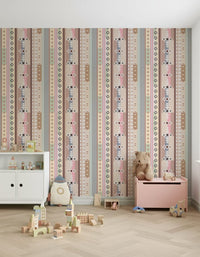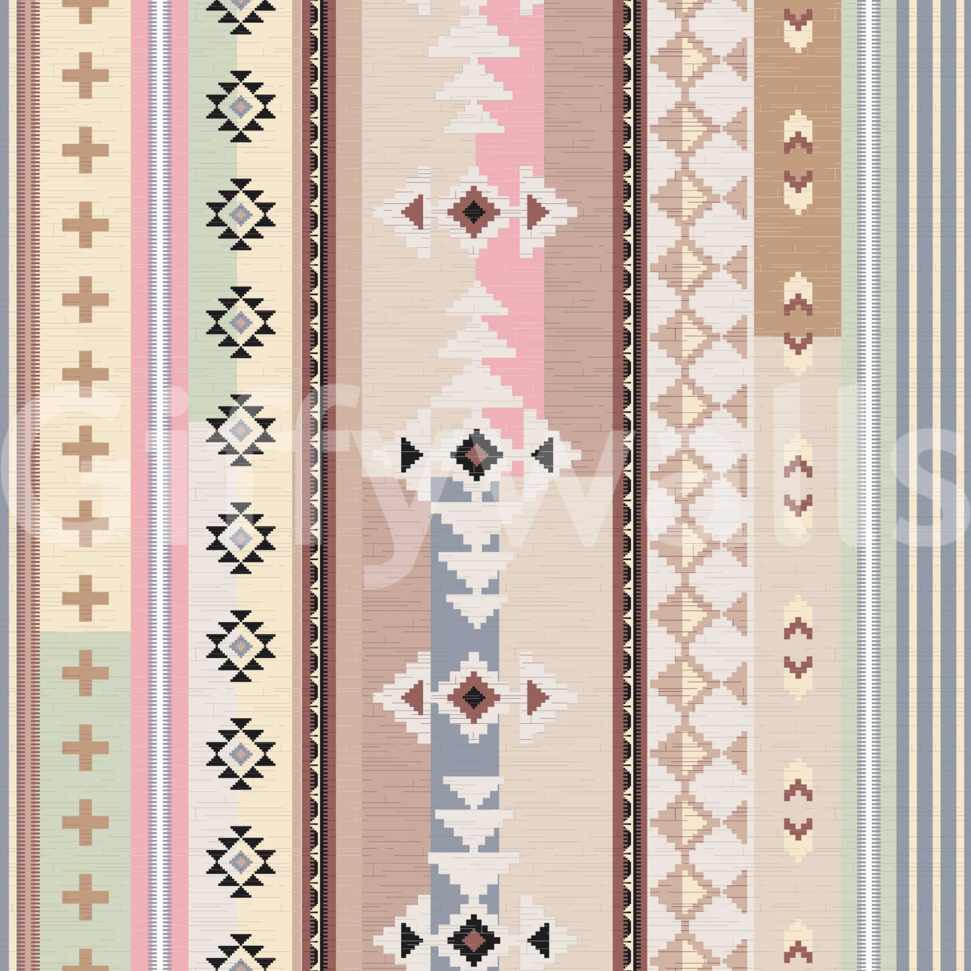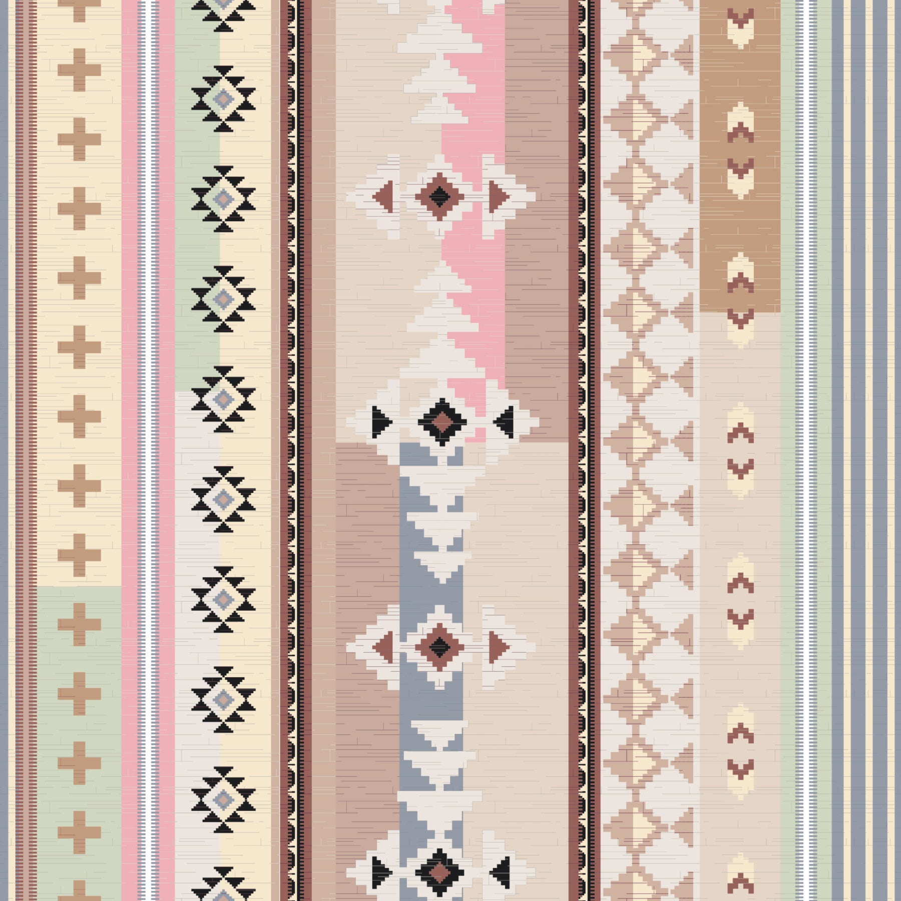 Inspired by woven textiles and desert landscapes, this pattern combines stripes and tribal-inspired motifs in soothing pastel and earthy shades. A perfect blend of modern boho charm and cosy sophistication.