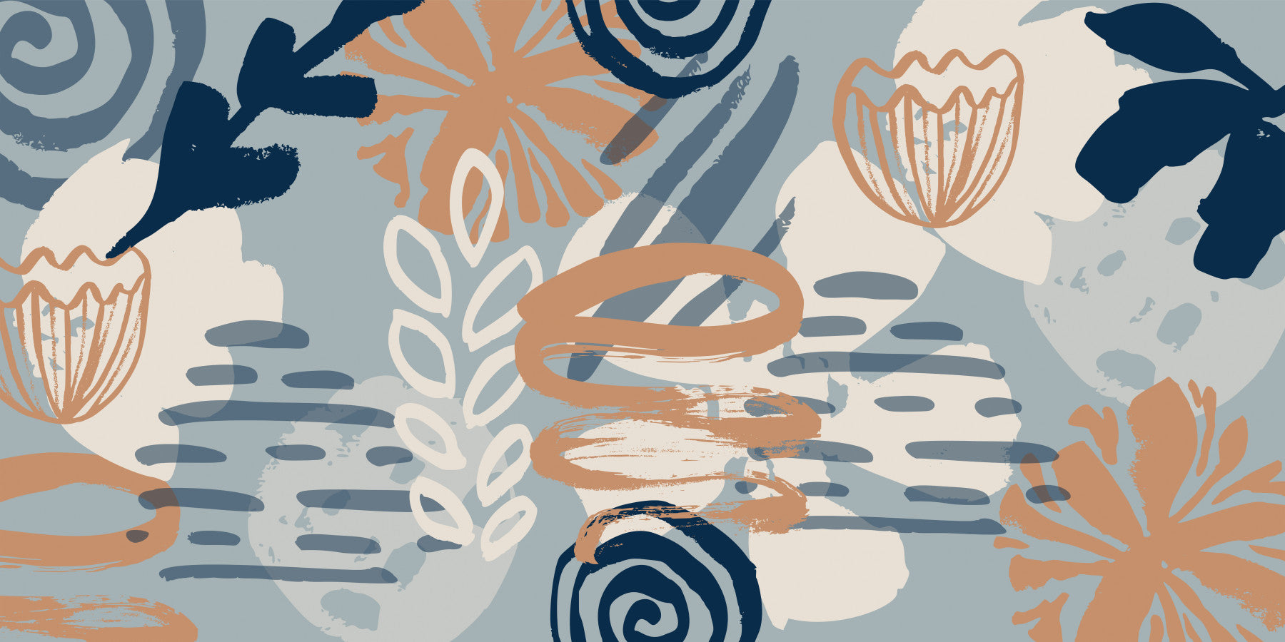 Transform your walls with this bohemian-inspired wallpaper. Hand-drawn floral elements blend with bold brushstrokes to give any room a textured look. Earthy tones of beige, navy, and terracotta create a warm, inviting space. This wallpaper for walls works well in living rooms, dining areas, or entryways. It complements bohemian, modern, or rustic styles, adding a touch of eclectic charm to your home.