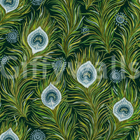 Bohemian wallpaper with dark blue and green feathers