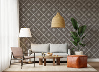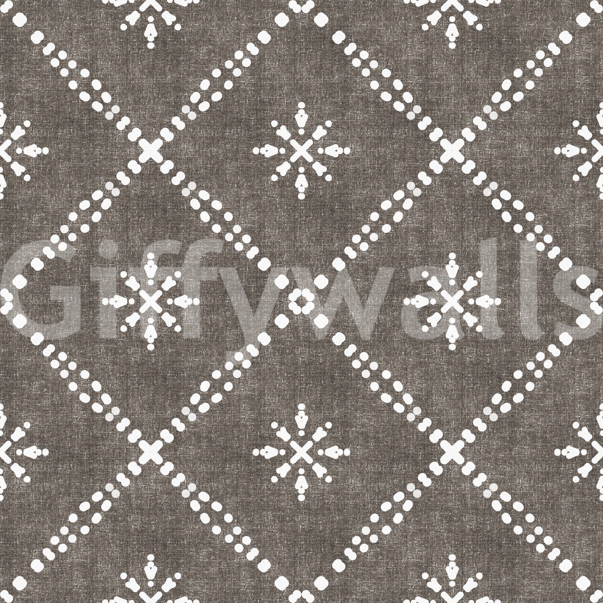 Boho Dotted Lattice Grunge Dark Bark Wallpaper⁠