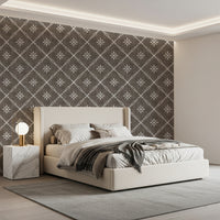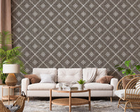 Transform your space with the earthy elegance of "Boho Dotted Lattice Grunge Dark Bark". This captivating design features a unique blend of bohemian charm and rustic texture, evoking a sense of natural tranquility. A dotted lattice pattern, resembling delicate branches, overlays a rich, dark bark-like backdrop. The intentionally distressed, grunge finish adds a layer of depth and character, creating a lived-in, comfortable atmosphere. Perfect for adding a touch of understated sophistication and organic warmth to any room, this distinctive pattern brings a sense of nature-inspired beauty to your interior design, making your walls a captivating focal point. Introduce a chic, relaxed vibe to your home today.