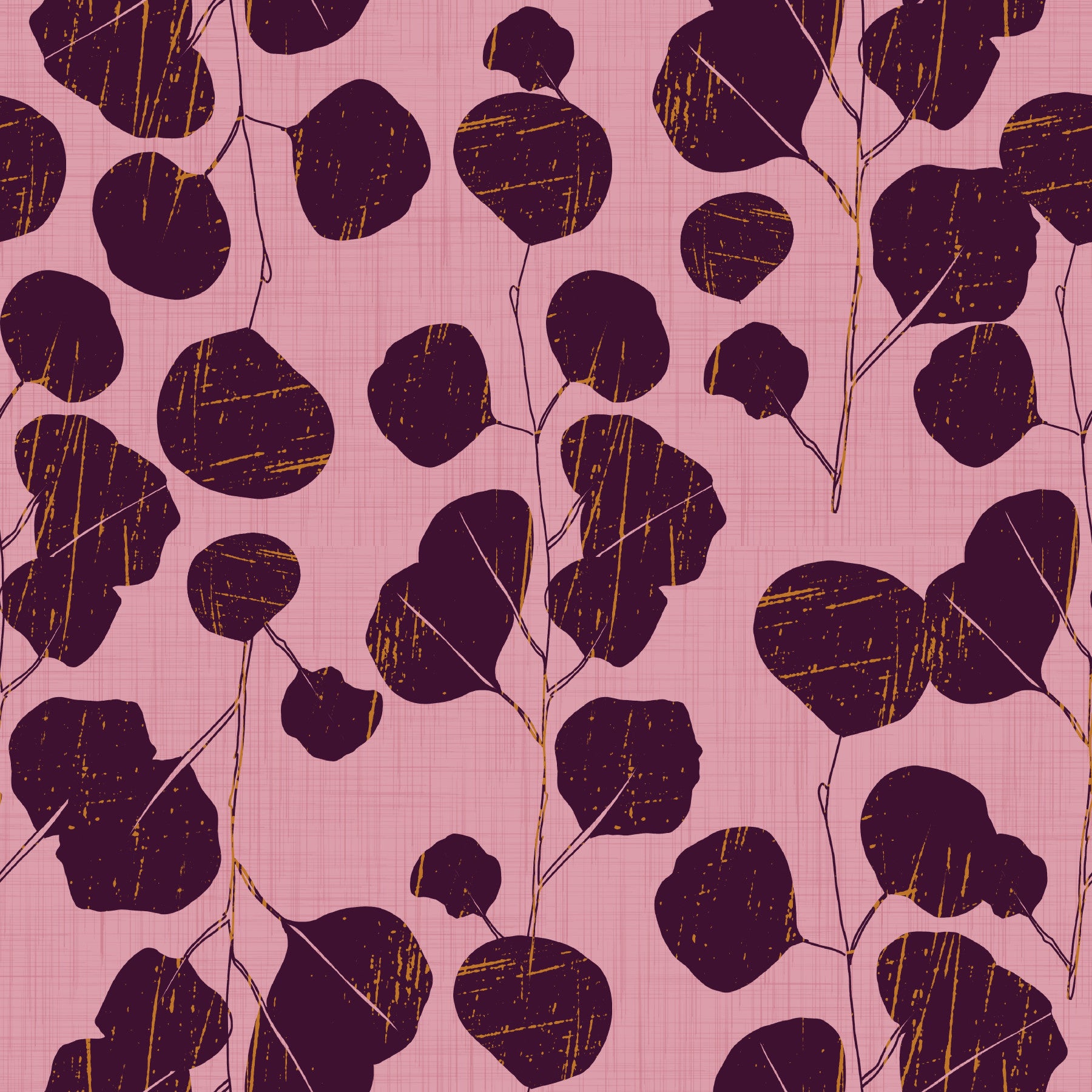 Boho Jewel Tone Botanical Plum Leaves Pink Wallpaper⁠