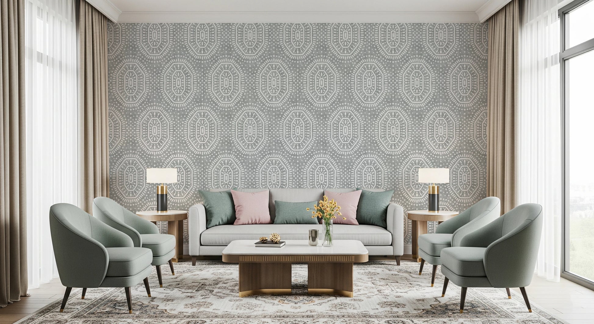 Boho Octagons Crochet Grunge Grey Clouds Wallpaper⁠