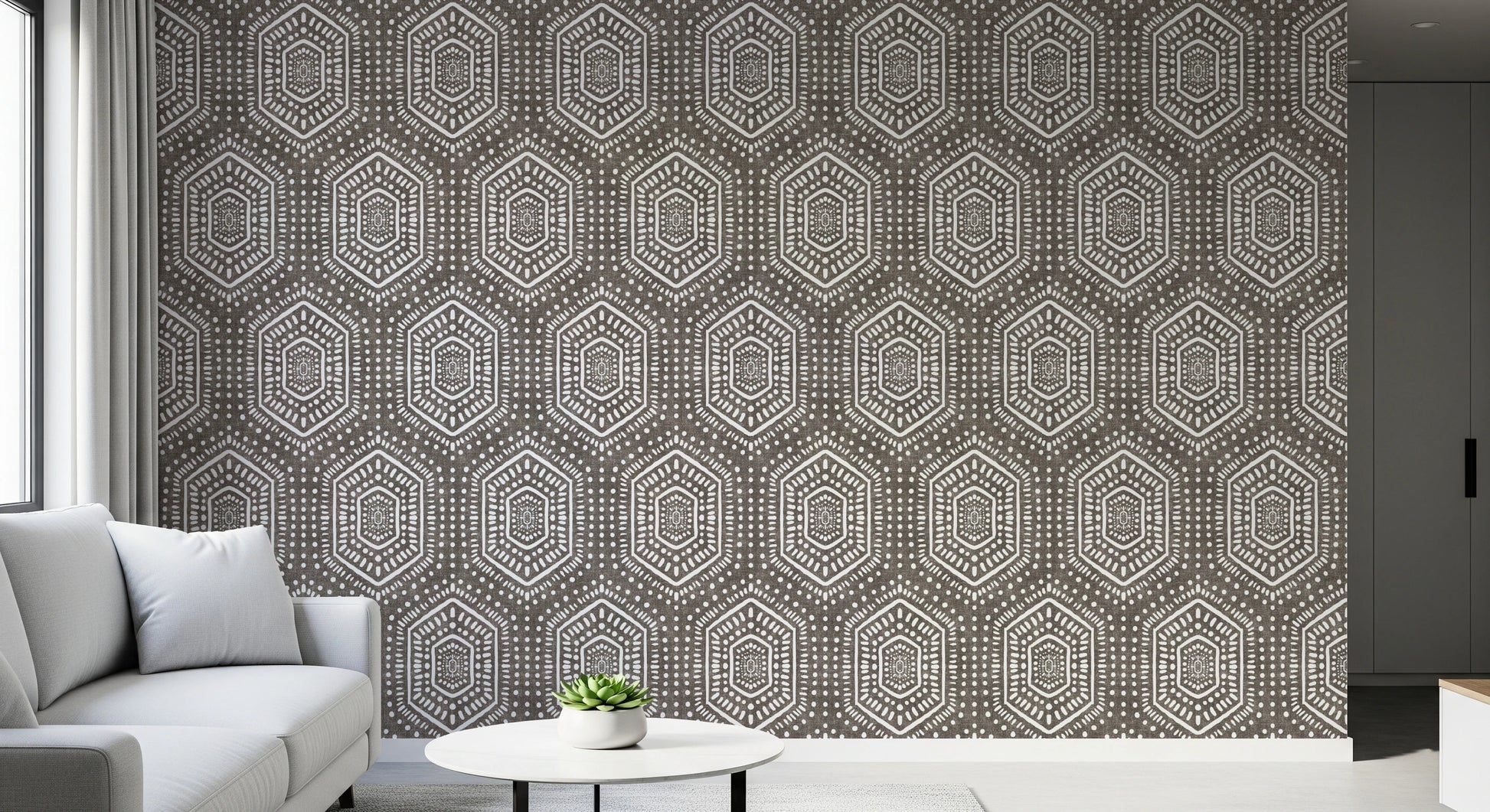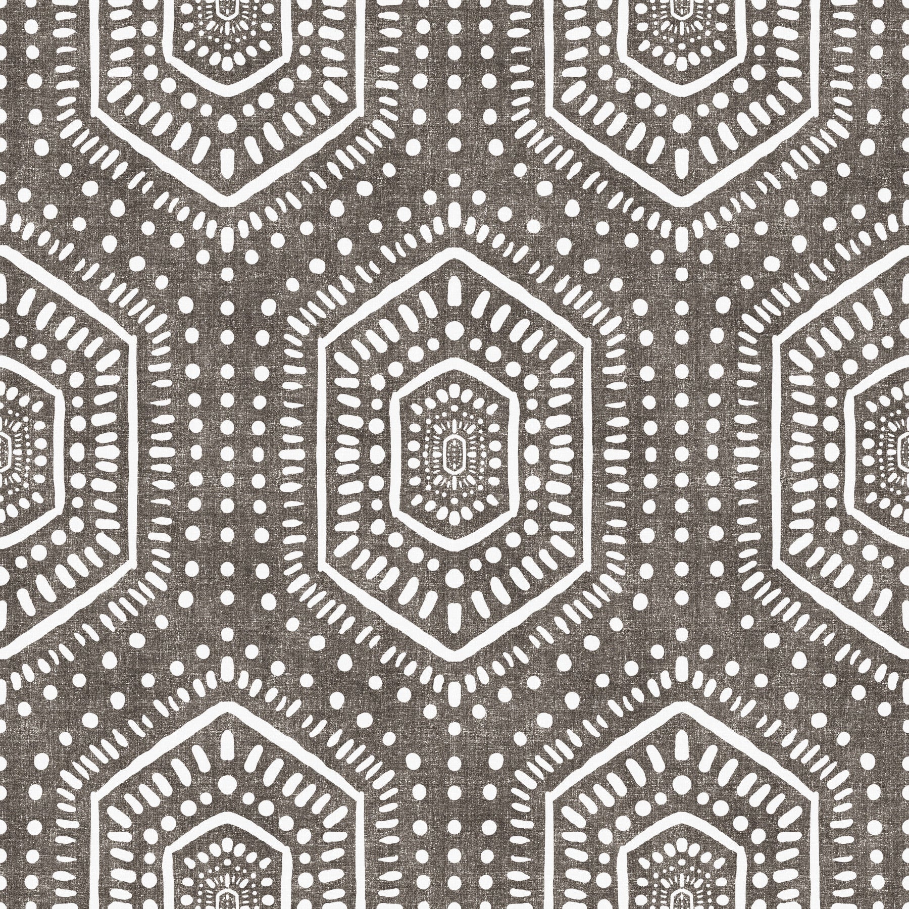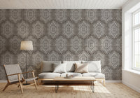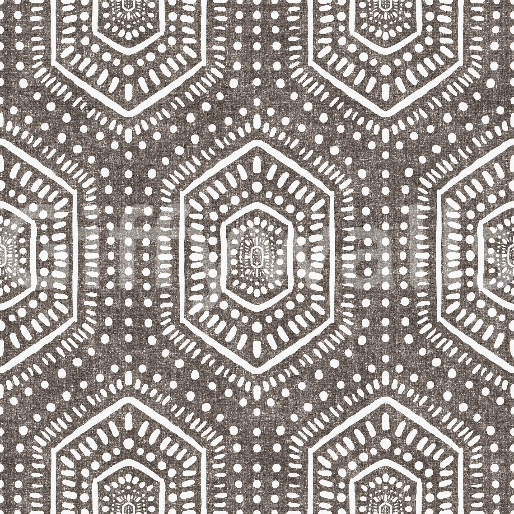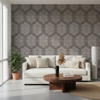Embrace the soulful spirit of bohemian artistry with our 'Boho Painted Grunge Dark Bark' wall covering. This design features a captivating geometric pattern, evocative of hand-painted tribal motifs. The contrasting white patterns pop against the 'dark bark' backdrop, creating a compelling visual texture. The unique, slightly distressed effect imbues a sense of raw, organic beauty, perfect for adding an eclectic and worldly charm to any space. Invite warmth and visual depth into your home with this distinctive design, transforming any wall into a statement piece that speaks to your unique style and adventurous spirit.