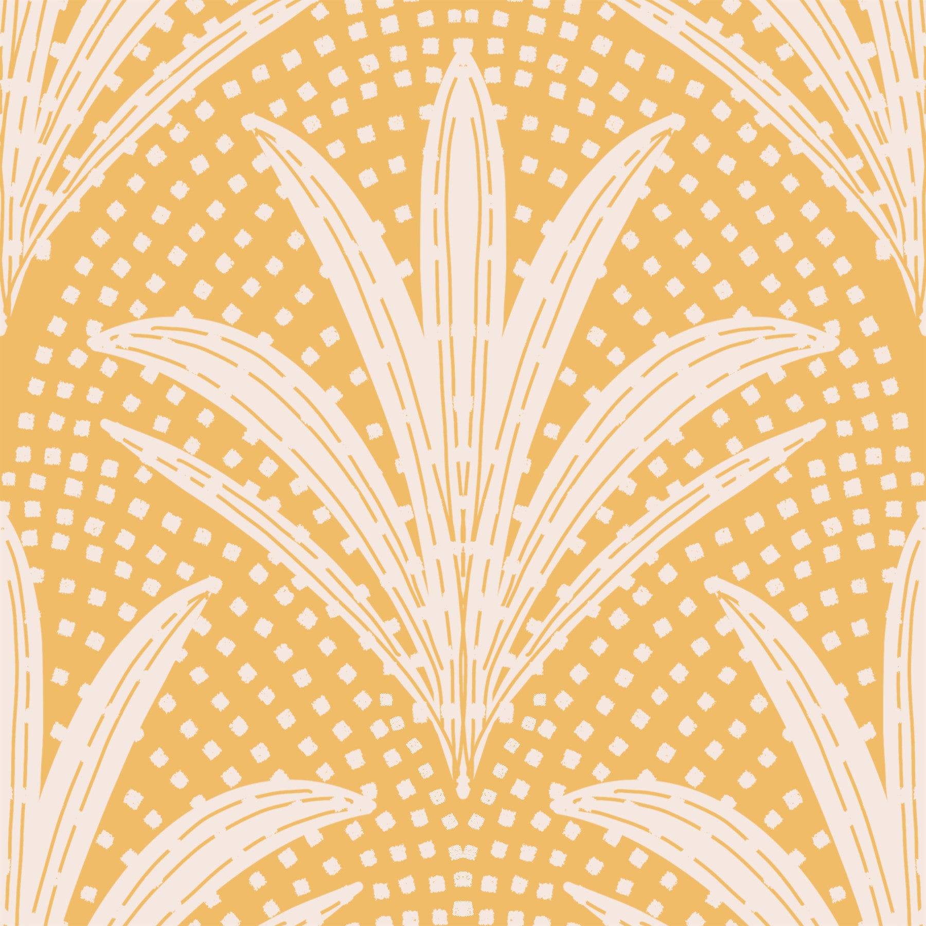 Palm leaf wallpaper with a golden ochre rustic vibe
