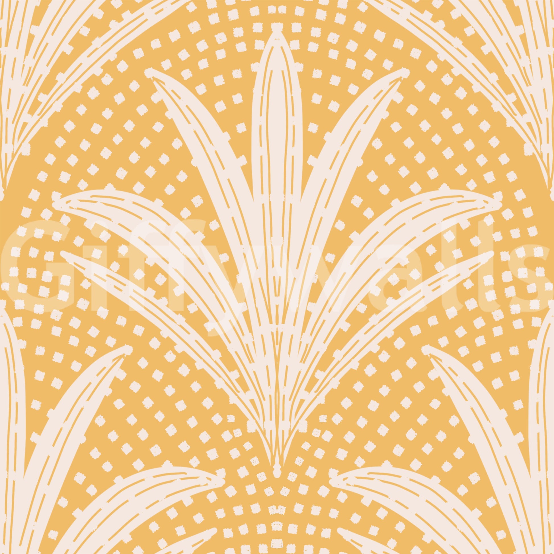 Rustic palm leaf wallpaper in warm golden ochre tones