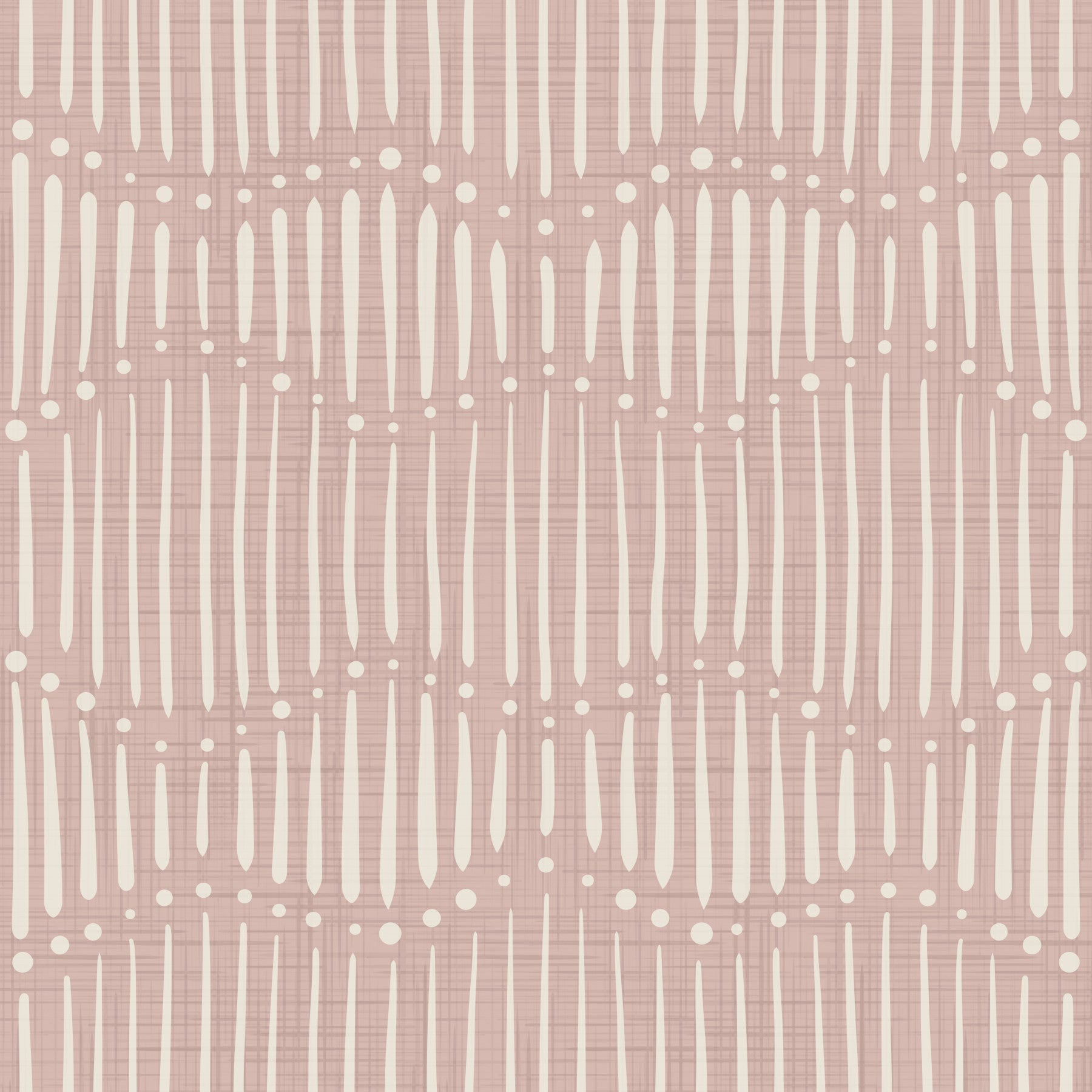 Embrace the free-spirited allure of 'Boho Waves On Rosy Canvas', a wallpaper design that exudes tranquil charm and artistic simplicity. Set against a subtly textured, rosy backdrop reminiscent of aged canvas, this design features elongated, flowing lines in a soft, creamy white. These lines create a wave-like effect, adding a touch of organic movement to your space. Scattered minimalist polka dots complete the boho feeling. Infuse your home with a sense of calm and creativity with this warm, inviting pattern. Ideal for creating a relaxed and inviting atmosphere in bedrooms, living rooms, or study spaces, 'Boho Waves On Rosy Canvas' brings a touch of understated elegance to any interior. Let your walls tell a story of artistic expression and bohemian spirit with this captivating wallpaper.