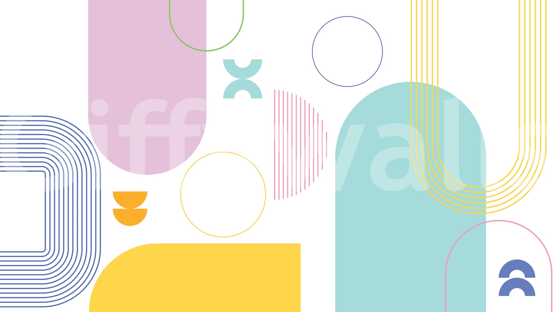 This wallpaper is a vibrant celebration of bold minimalist geometric design. Clean lines and soft pastel hues—lavender, mint green, and sunny yellow—create a visually calming yet striking composition. Curved shapes and concentric circles dance alongside straight lines and simple geometric forms, fostering a sense of balance and modern elegance. The subtle color palette and uncluttered layout make it a perfect choice for those seeking a sophisticated yet playful backdrop for their kids or teens room.