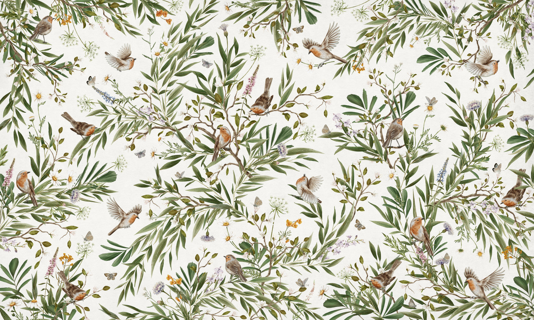 Transform your room into a serene sanctuary with this enchanting wallpaper for walls. This design features petite robins nestled amongst delicate olive branches and blossoming wildflowers, creating a peaceful haven. Its soothing hues and timeless aesthetic are ideal for bedrooms, living rooms, or a calming nursery. The design evokes a sense of natural harmony.