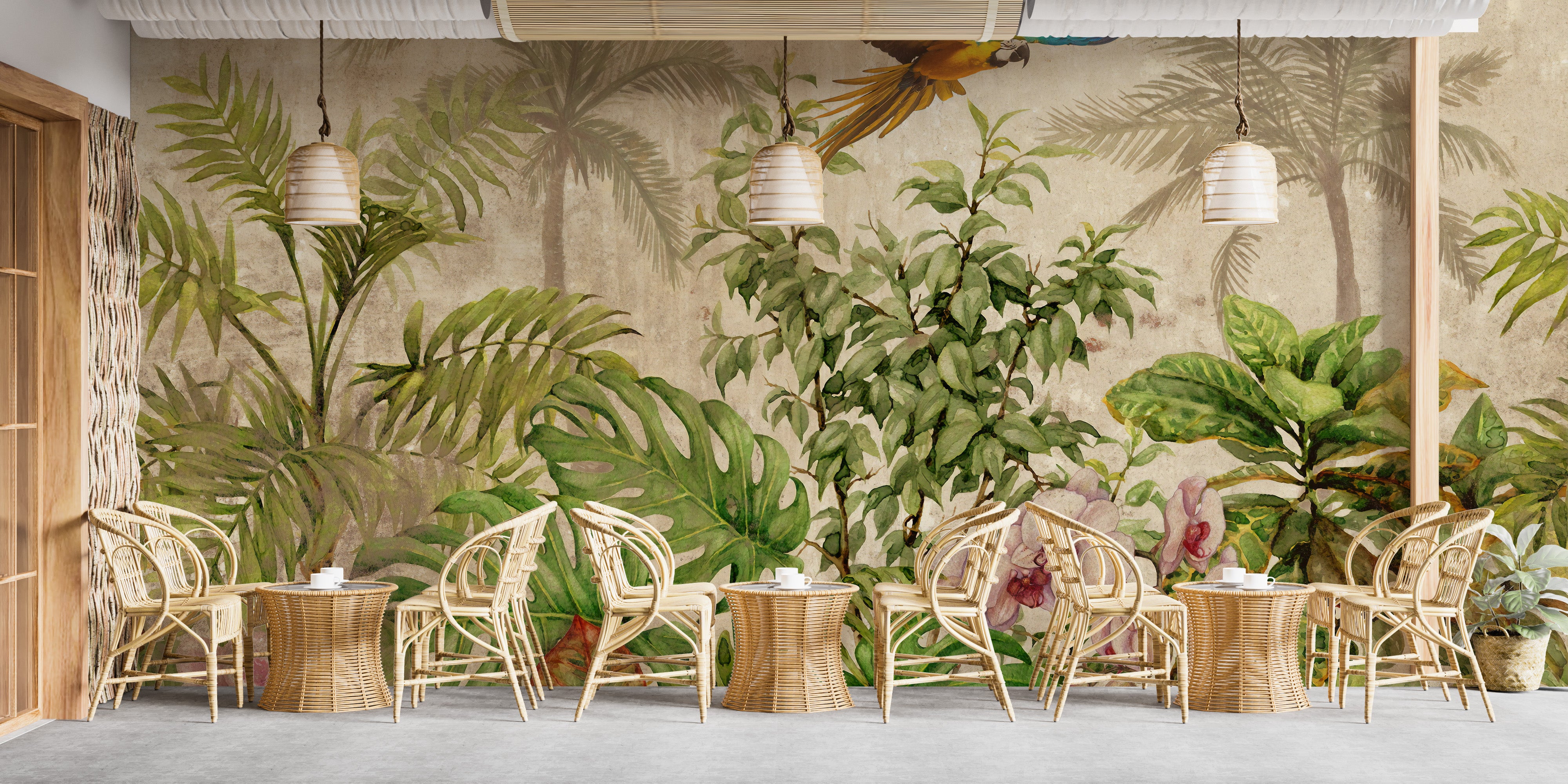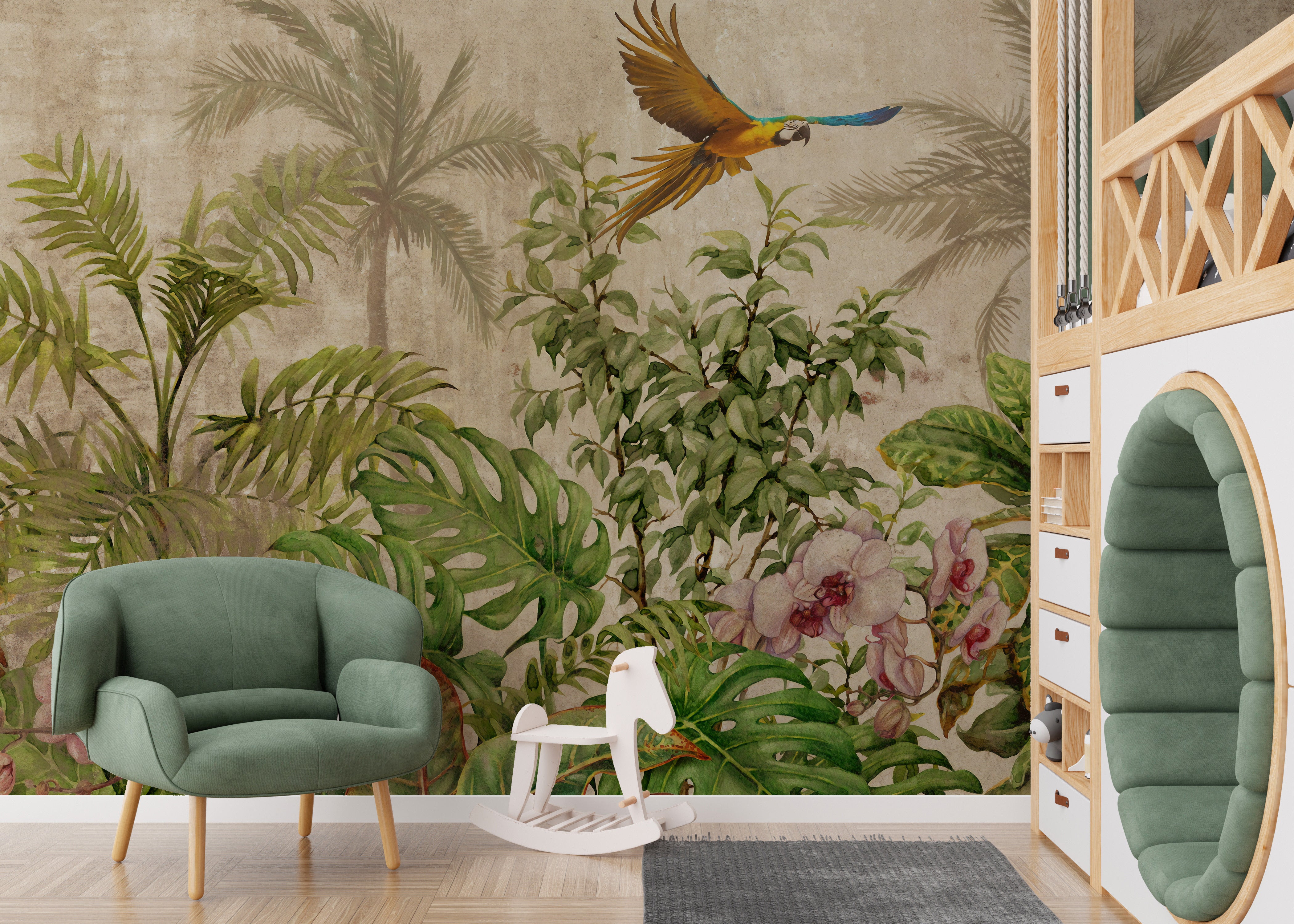 Bring the lushness of the tropical jungle to your bathroom. The exotic feathered fliers tropical jungle mural wallpaper is perfect for nature enthusiasts who want to surround themselves with the beauty of the wildlife. The nature wallpaper features a stunning array of colourful birds fluttering through the jungle foliage, creating an immersive display that transports you to a paradise-like setting. This wallpaper design is perfect for homeowners who want to infuse their space with organic charm and bring the beauty of nature indoors. With this stunning wallpaper design, you can transform your bathroom into a tropical oasis and enjoy the calming effects of natural beauty right at home.