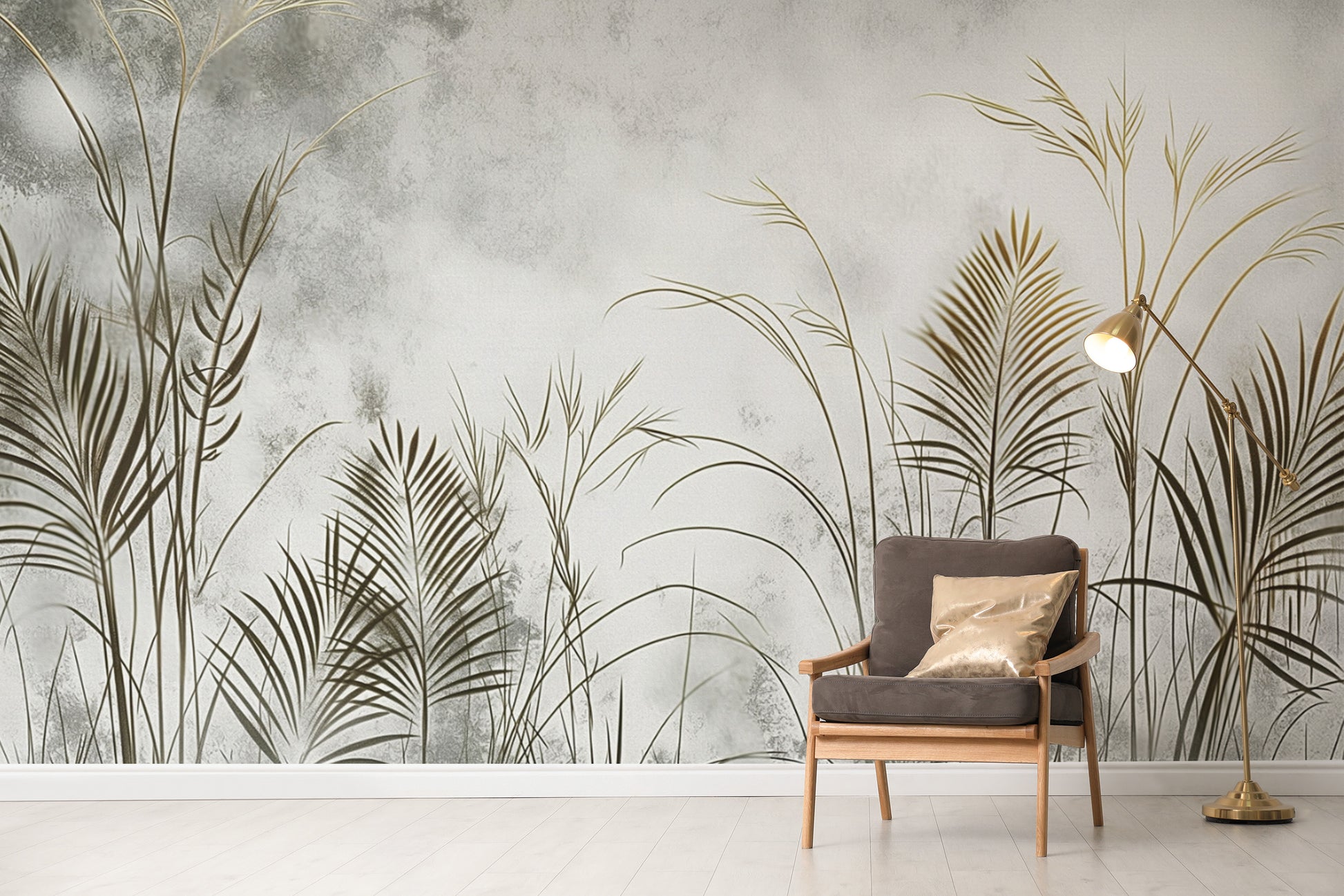 Bring nature's elegance to your walls with the botanical gold leaves wallpaper mural. This design features luxury tropical wall art with delicate palm leaves and soft gold accents against a textured background. The muted tones create a sophisticated look, perfect for modern interiors. Crafted with high-quality materials, this modern botanical wallpaper suits living rooms, bedrooms, and offices. The neutral-tone wallpaper blends effortlessly with various styles, adding warmth and depth. Inspired by nature, this tropical leaves mural brings a serene touch to any setting—experience timeless beauty with this botanical wallpaper mural, designed for effortless style and lasting appeal.