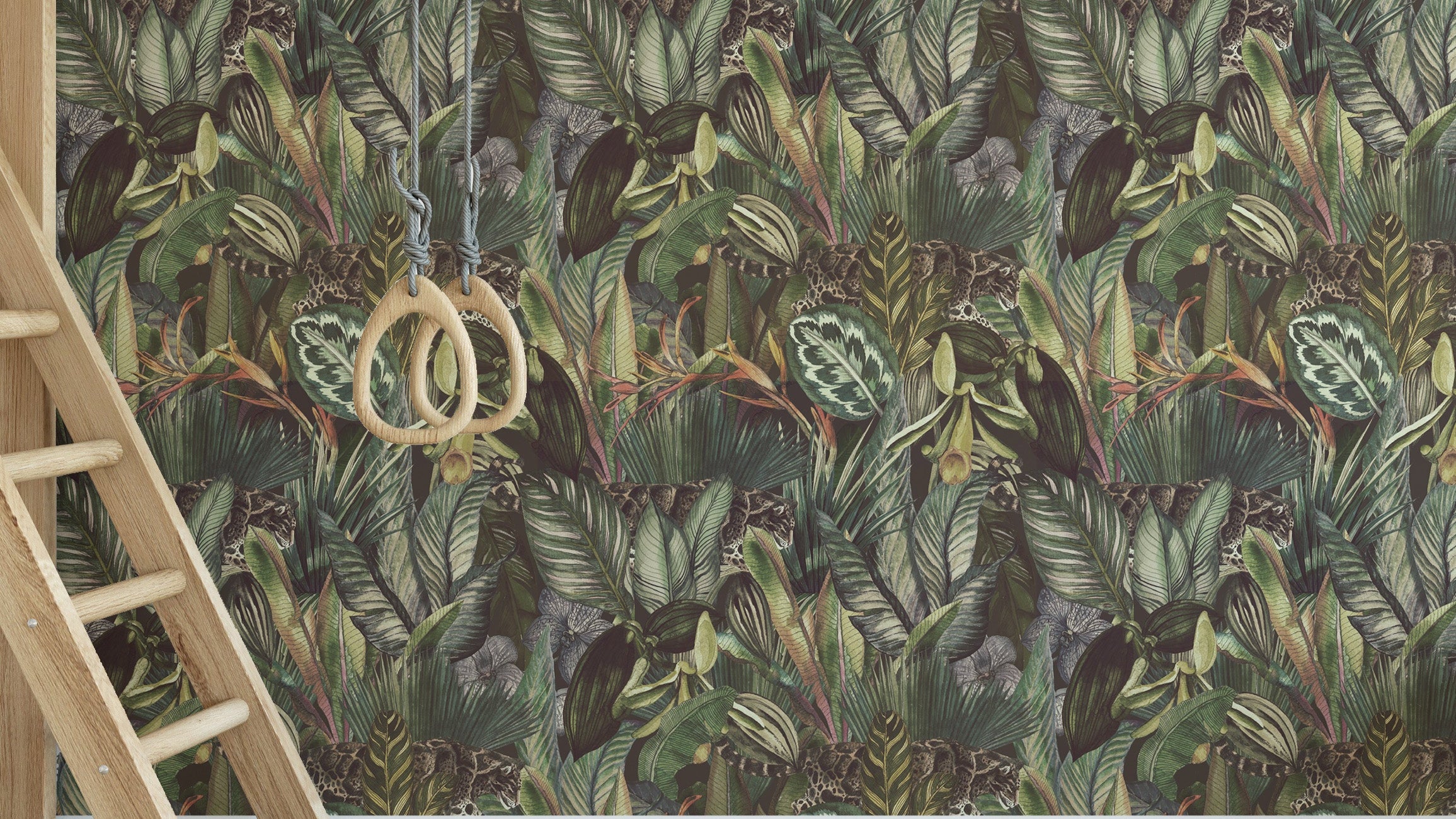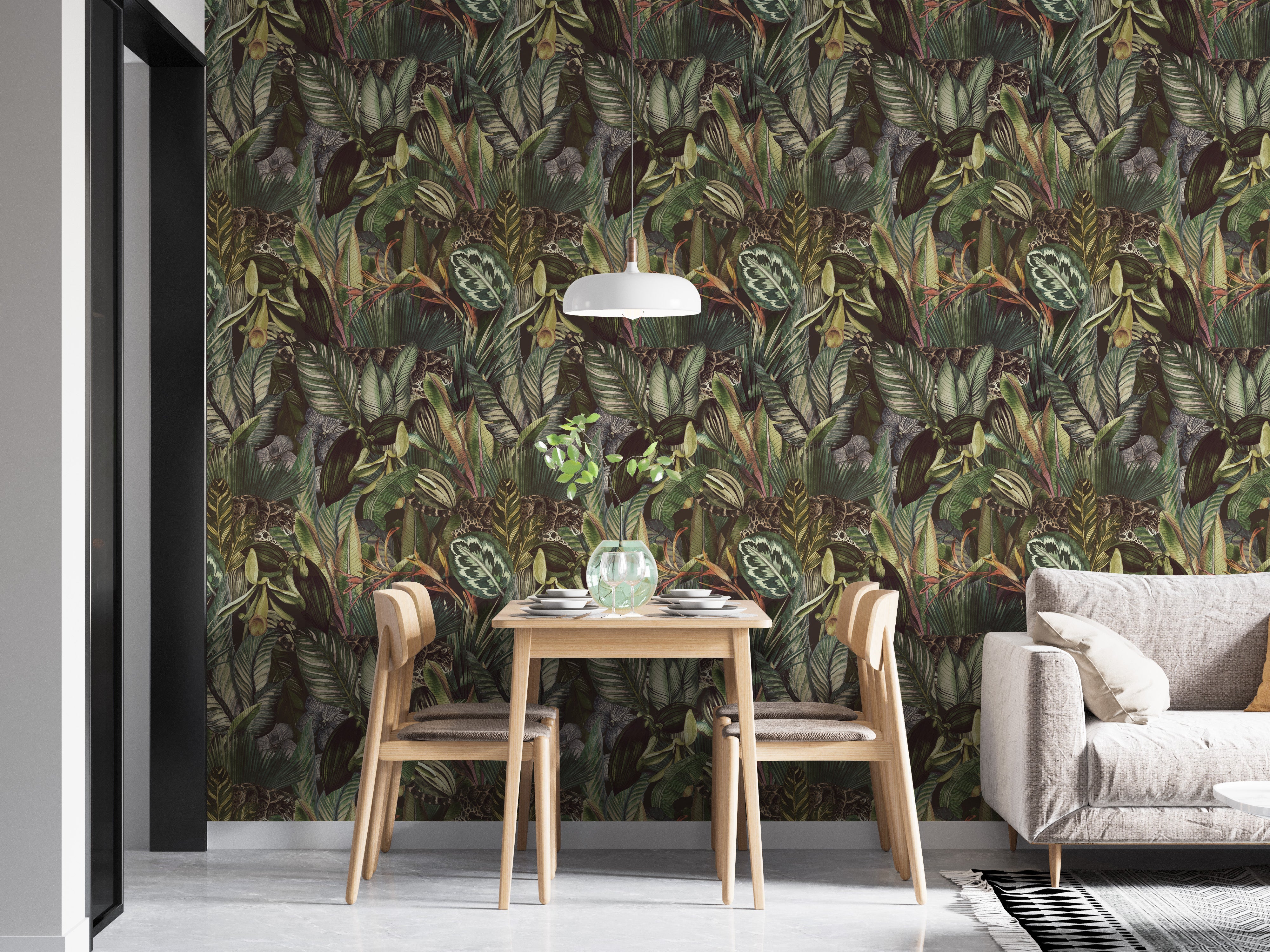 Dive into the lush serenity of our botanical jungle removable wallpaper. Inspired by the rich biodiversity of the rainforest, this botanical jungle wallpaper is a beautiful melange of vibrant green hues and intricate botanical details. The stunning green color botanical wallpaper captures the essence of the jungle, making it an ideal choice for those seeking to bring a touch of nature into their living spaces. Its removable design ensures flexibility, allowing you to change the look of your room whenever you desire. Perfect for nature enthusiasts or anyone looking to add a refreshing tropical vibe to their interiors. Experience the wild beauty of the jungle every day with this exquisite jungle removable wallpaper. A must-have for those who appreciate nature's unparalleled artistry.