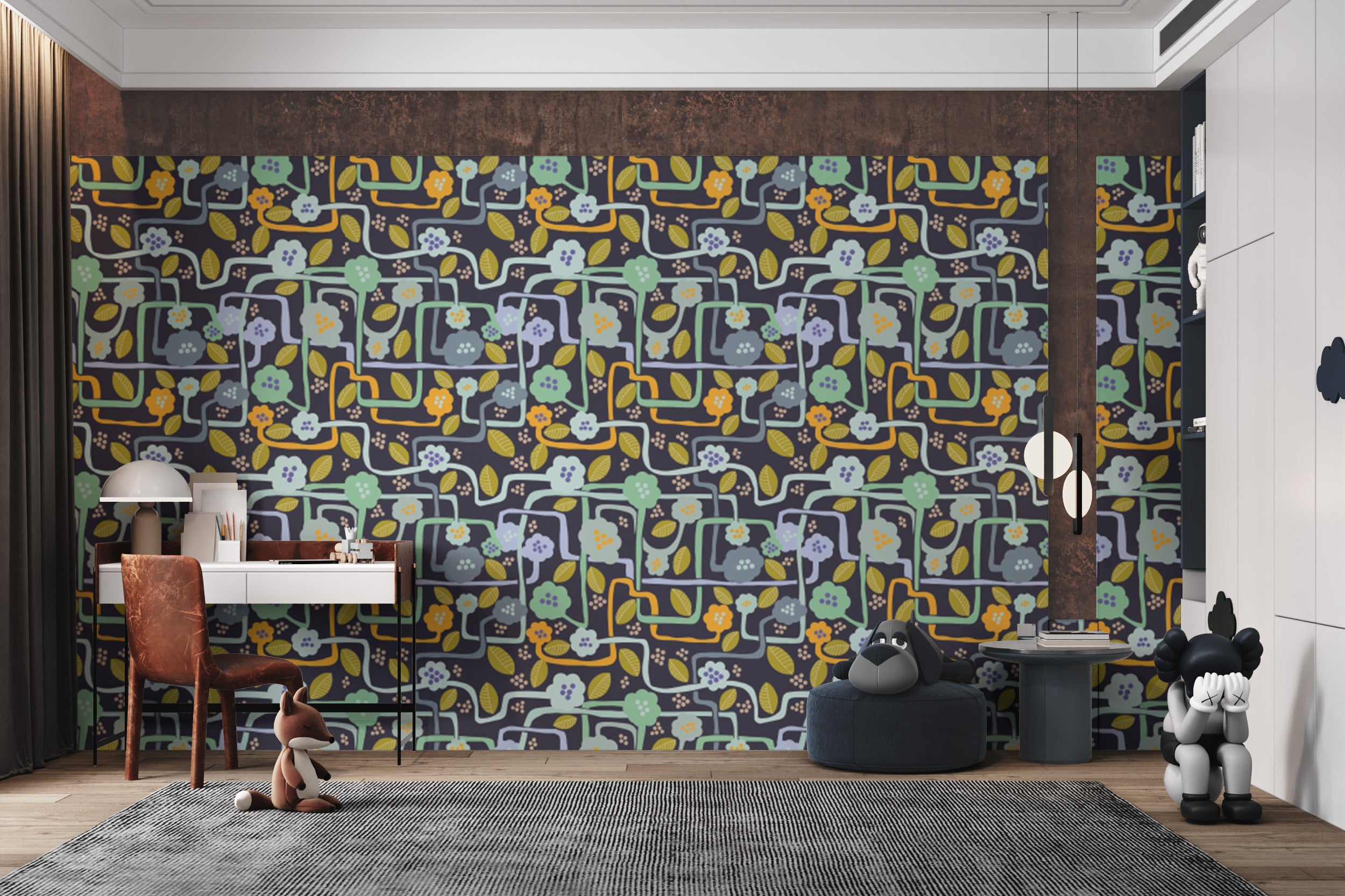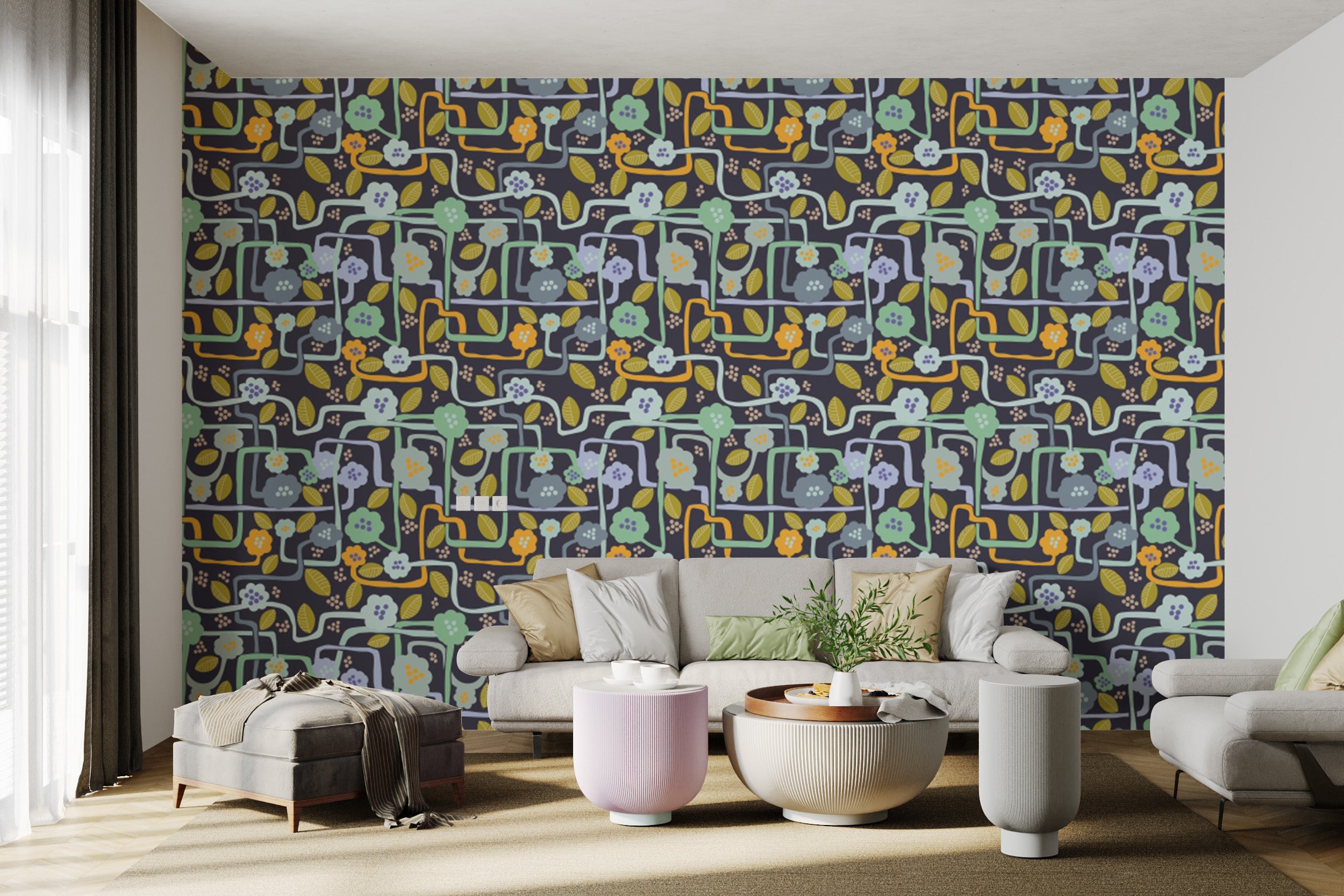 Sophisticated botanical nighttime wallpaper with floral patterns.