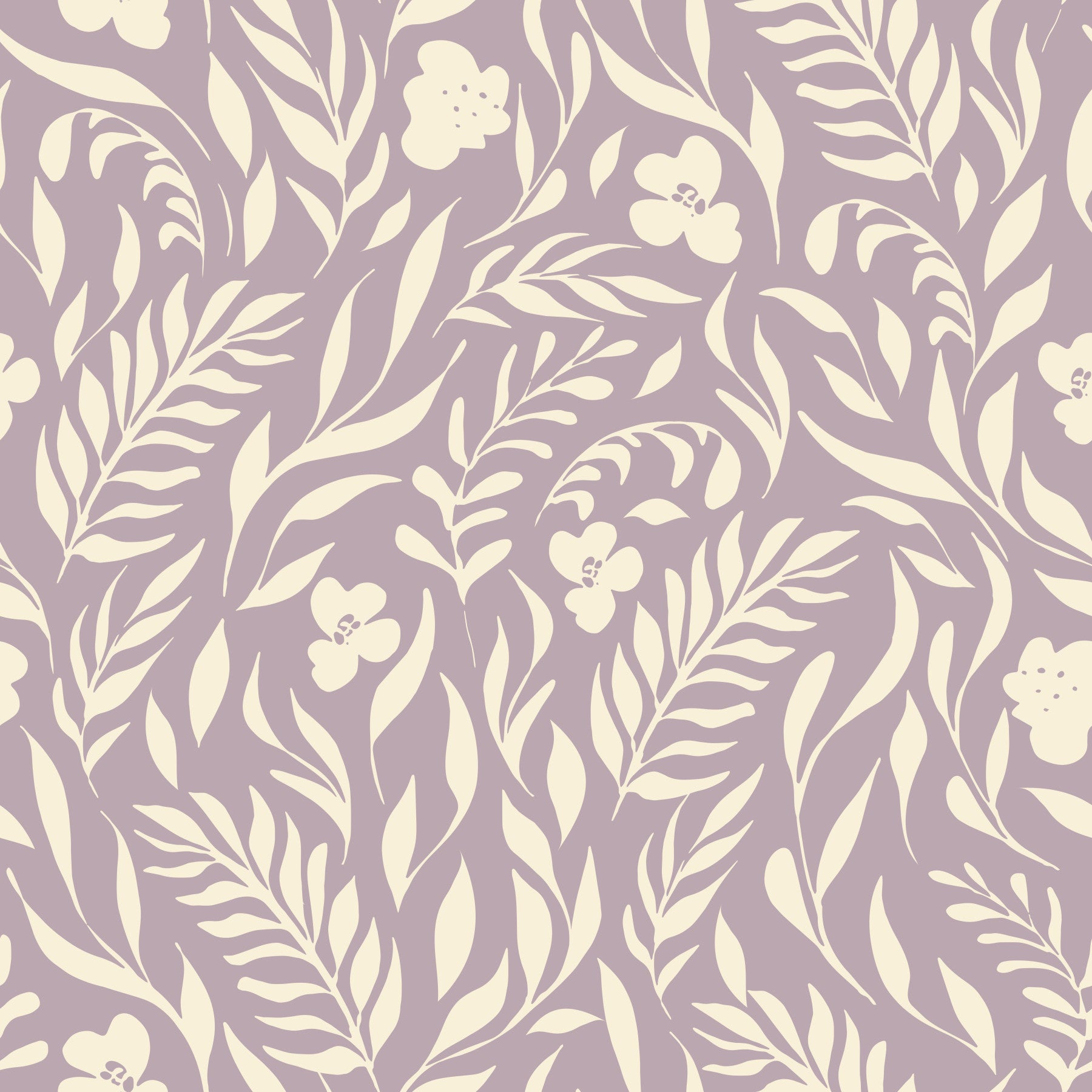 Embrace gentle charm with this inviting floral design. Notice the simplified botanical shapes in a soft cream that dances across a muted lavender canvas. This wallpaper for walls creates a backdrop of subtle beauty suitable for numerous rooms. Install it in bedrooms, nurseries, or even bathrooms to inject a bit of organic freshness. Its soft color palette serves as a fantastic complement to both light and dark interiors.