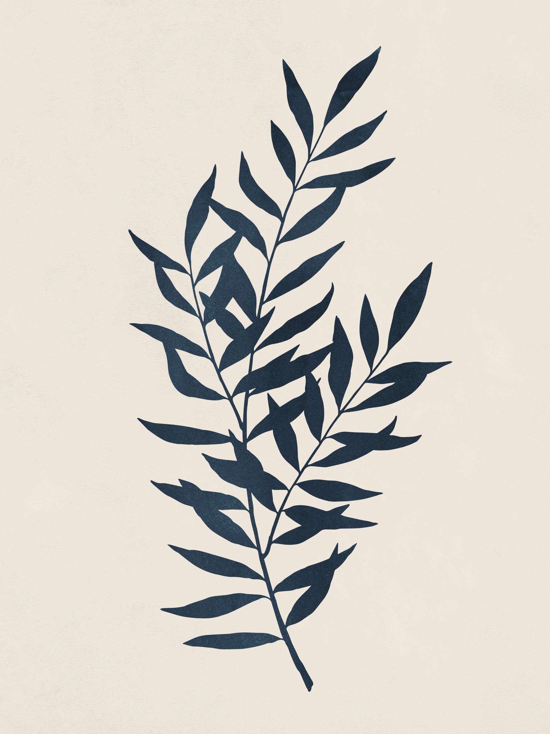 Experience the beauty of understated elegance with this botanical-themed wallpaper. A single branch, rendered in a deep navy blue, is presented against a soft off-white background. The silhouette of the leaves is striking, creating a sense of depth and sophistication. This design works beautifully in modern, minimalist, or Scandinavian-style interiors. The calm color palette creates a soothing atmosphere, perfect for fostering relaxation and tranquility in a bedroom or living room. The clean lines and simple design make it incredibly versatile.