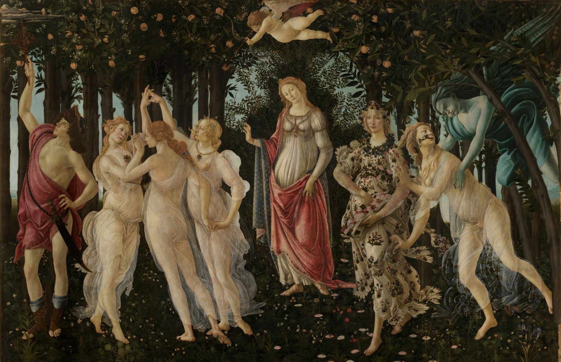 Renaissance beauty in Botticelli’s Primavera wall mural.