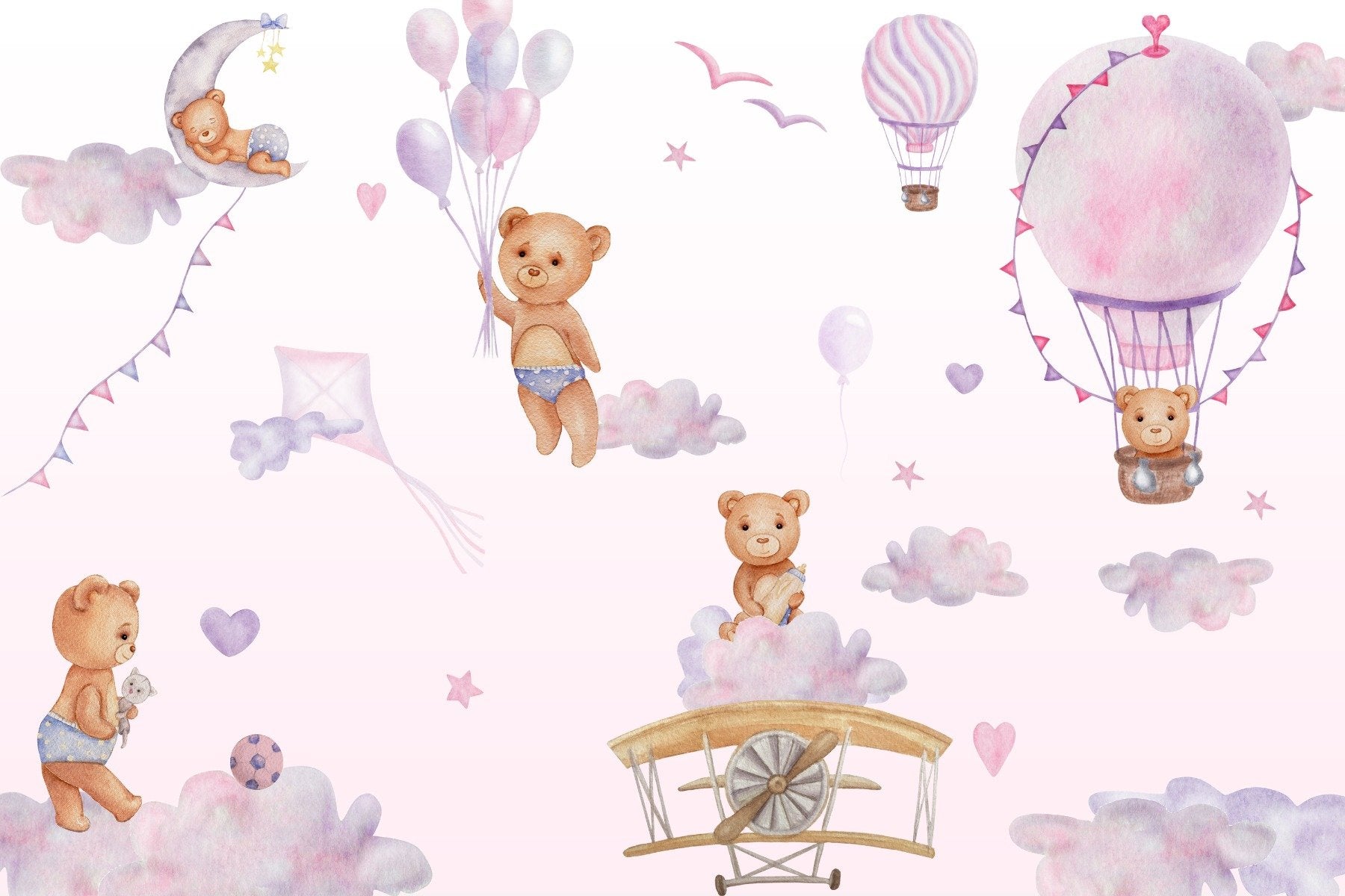 Bouncy Bear Sky Journey Mural removable wallpaper