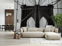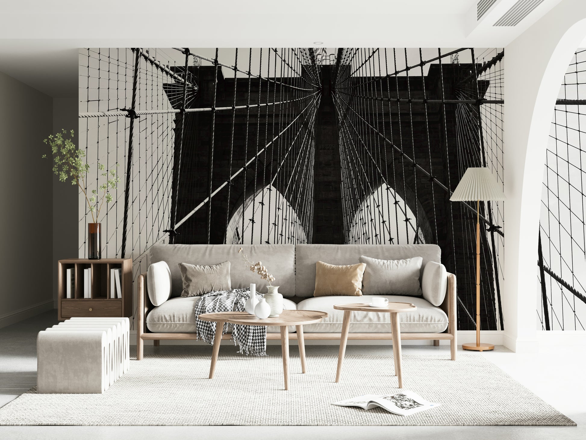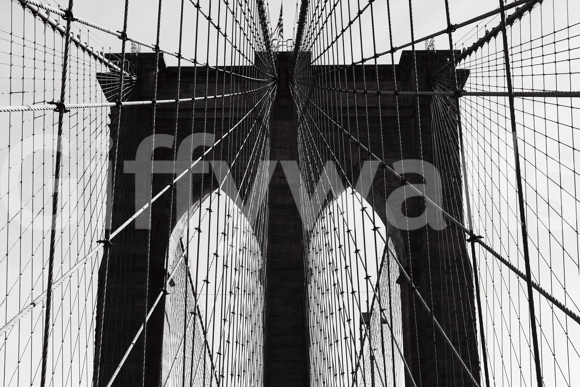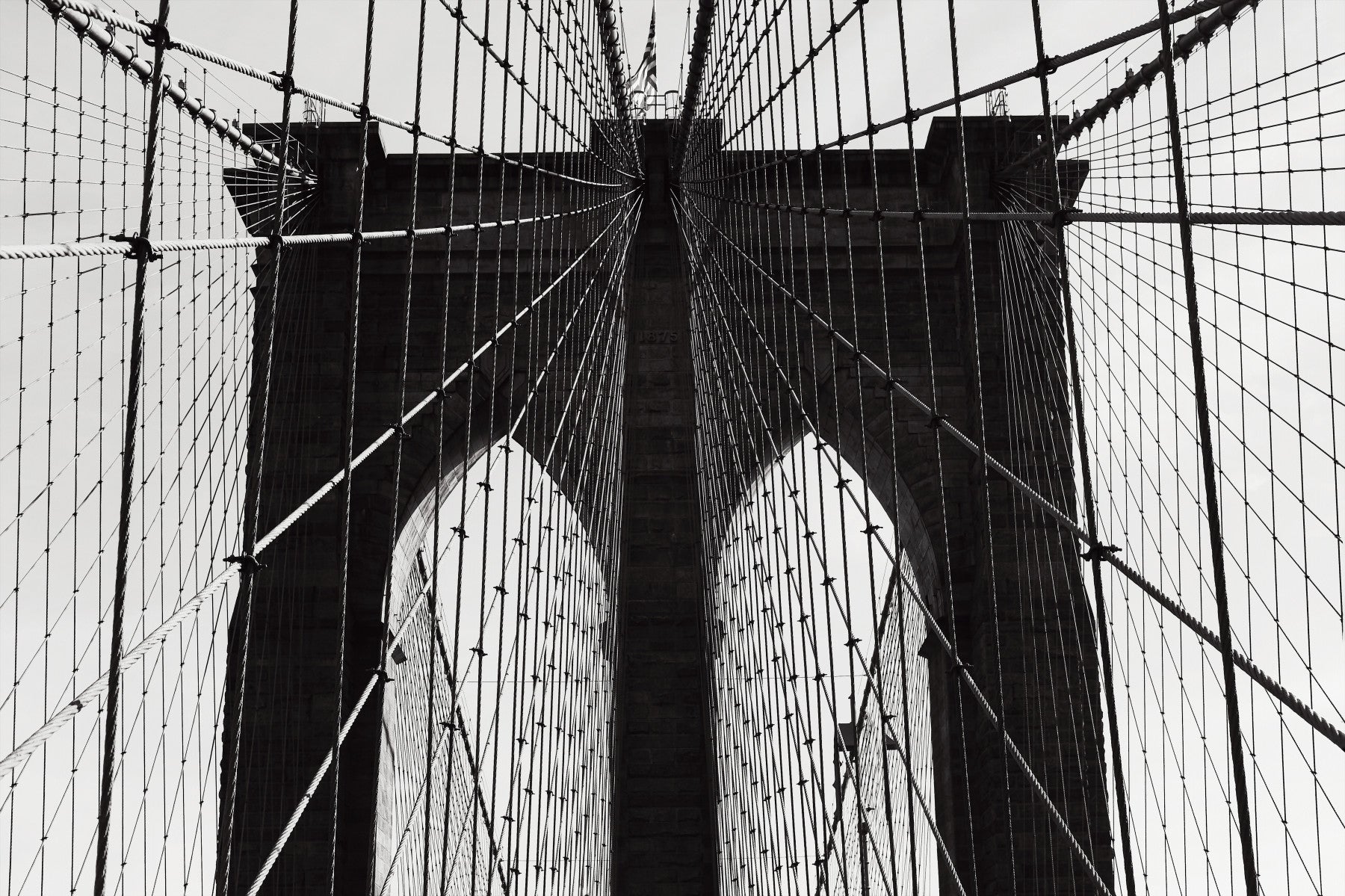 Immerse yourself in the architectural grandeur of "Brooklyn's Cables". This stunning black and white wallpaper captures the iconic Brooklyn Bridge from a unique perspective, emphasising its intricate network of cables. The powerful geometry and stark contrast create a visually compelling image, highlighting the bridge's monumental scale and structural complexity. Each cable, meticulously rendered, draws the eye and creates a sense of depth, inviting you to explore the craftsmanship behind this engineering marvel. Let the resolute strength and timeless elegance of the Brooklyn Bridge transform your screen into a striking statement piece, a testament to human ingenuity and urban beauty. Perfect for those who appreciate industrial chic and classic design.