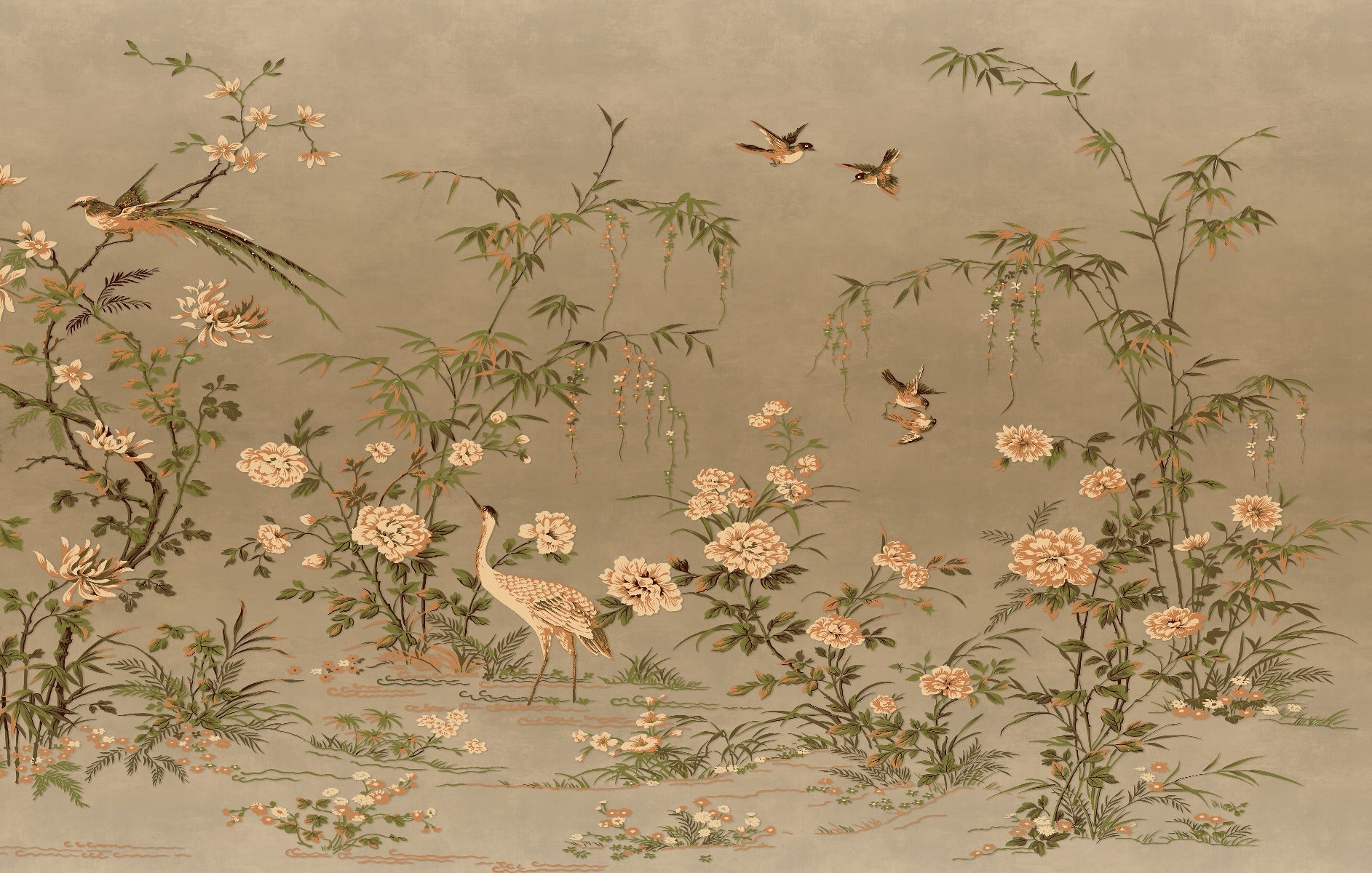 Japanese Birds & Trees Chinoeserie Wallpaper