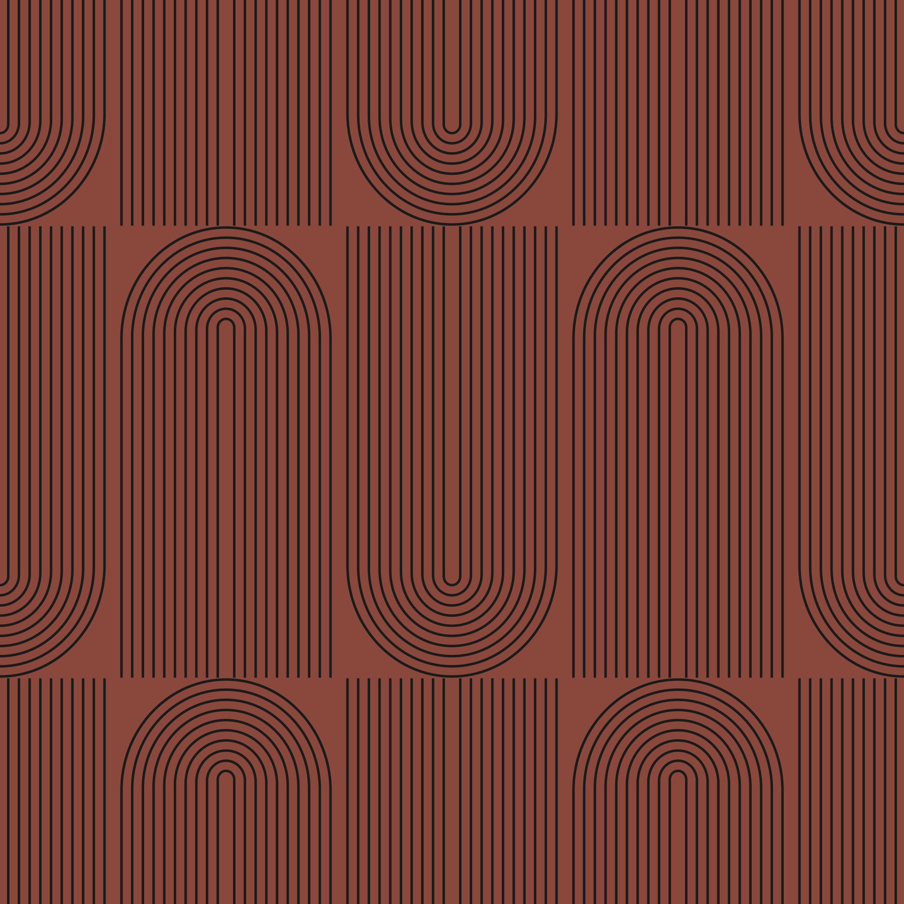 Terracotta background with black linear arc wallpaper.