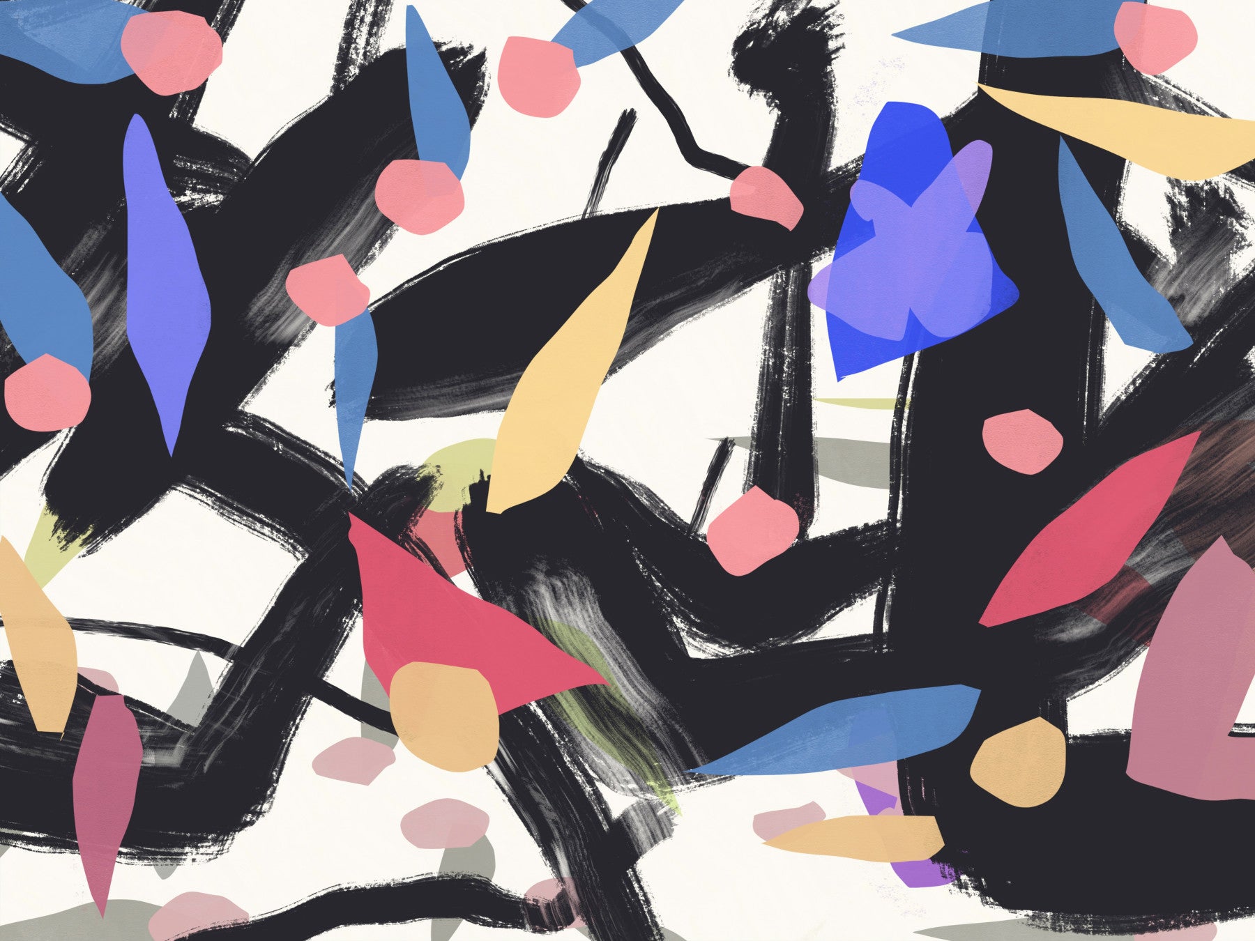 Invite a world of artistic expression into your home with this vibrant wallpaper for walls. Bold brushstrokes dance with playful shapes in a lively arrangement. The design features black lines contrasted with pops of red, blue, and yellow, creating a sense of energy and motion. The abstract style adds a touch of intrigue, making it a standout feature in any room. Consider this for a modern living room, a creative home office, or a funky bedroom where imagination takes center stage.