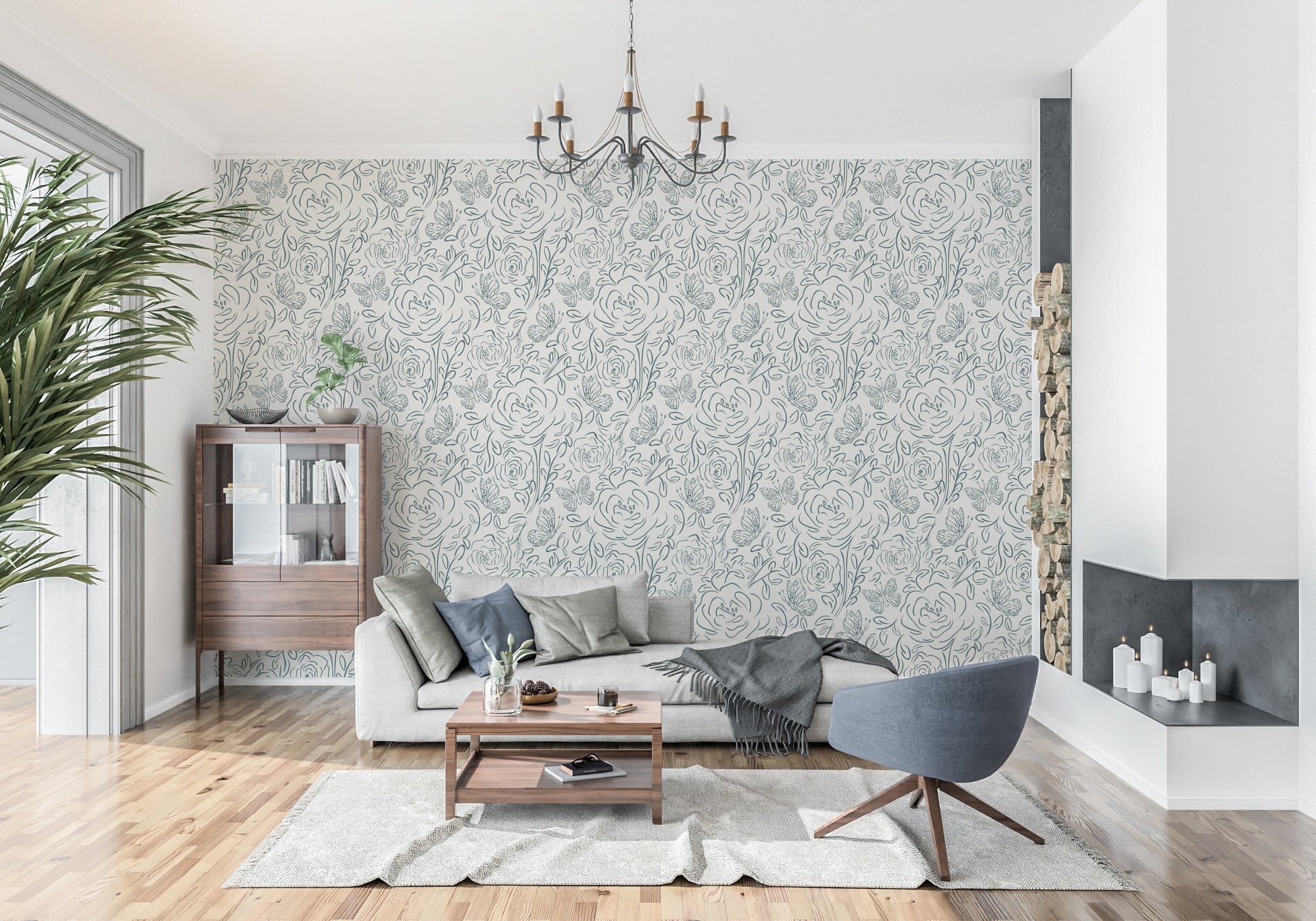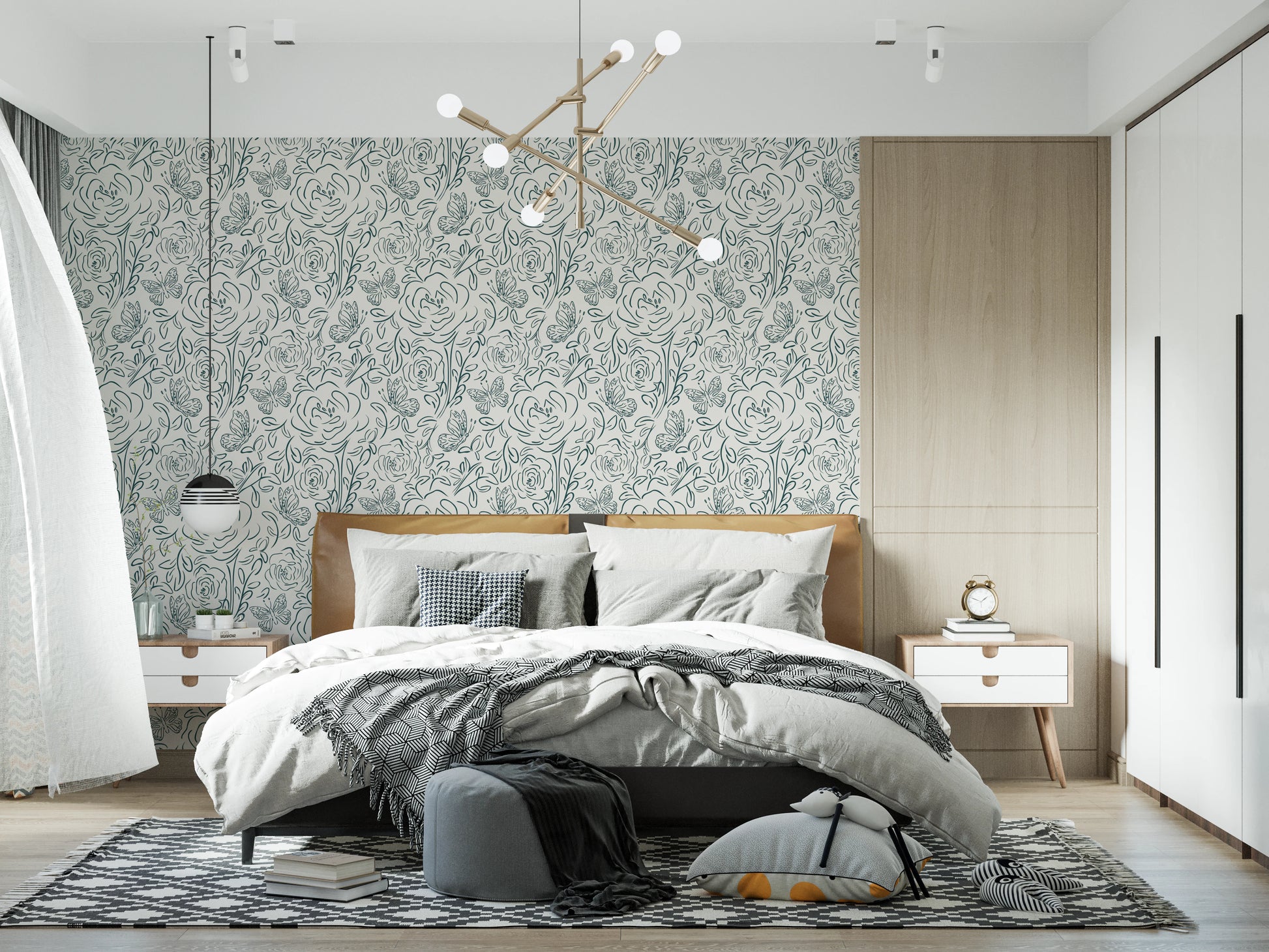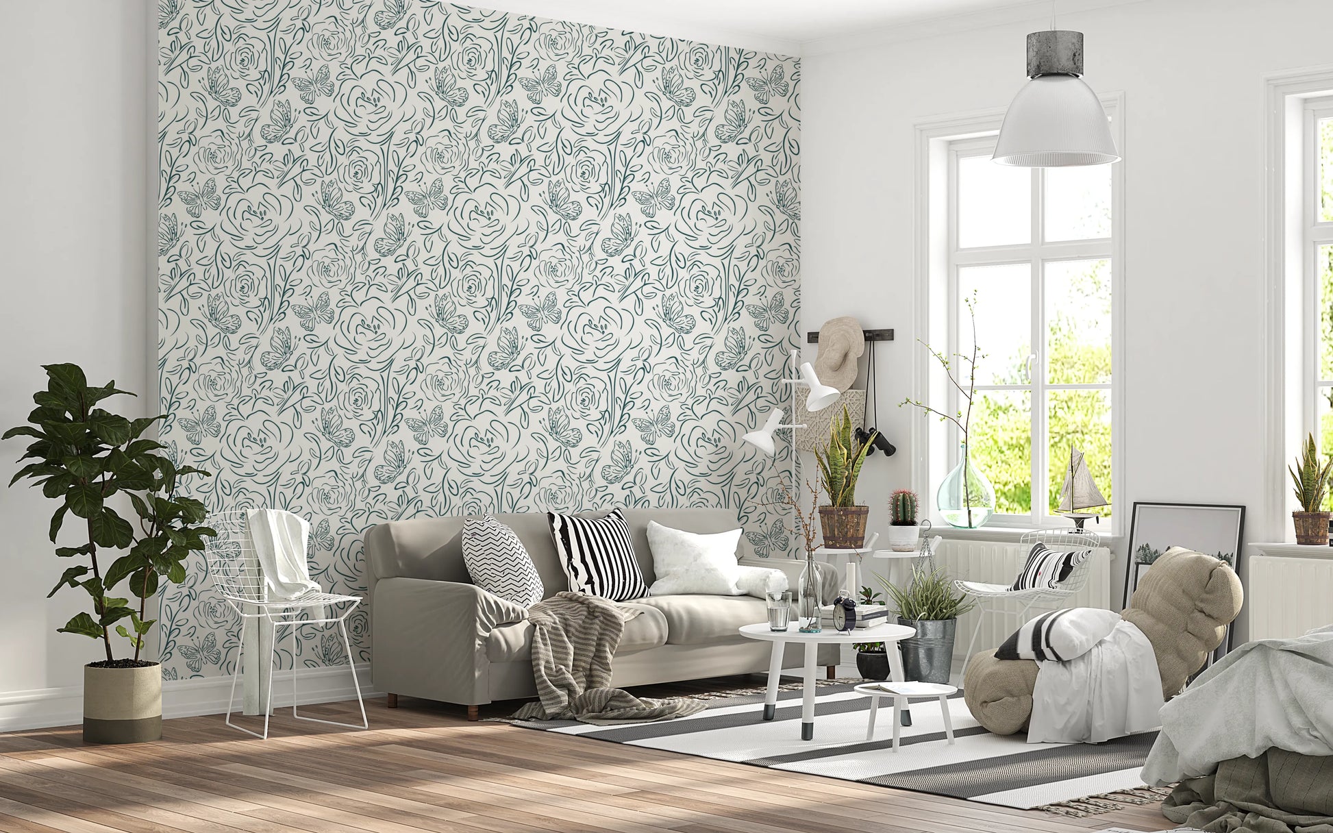 Introduce a touch of simple elegance to your home with this butterfly and floral line-art wallpaper for walls. The delicate, continuous-line design creates a graceful, flowing pattern of roses, leaves, and butterflies. A single green hue against a neutral backdrop allows this pattern to complement any space. This wallpaper brings a calming and sophisticated element to your bedroom, living room, or dining area. The minimalist style enhances your interior without overpowering it. Enjoy the beauty of nature-inspired art that blends seamlessly with modern decor.