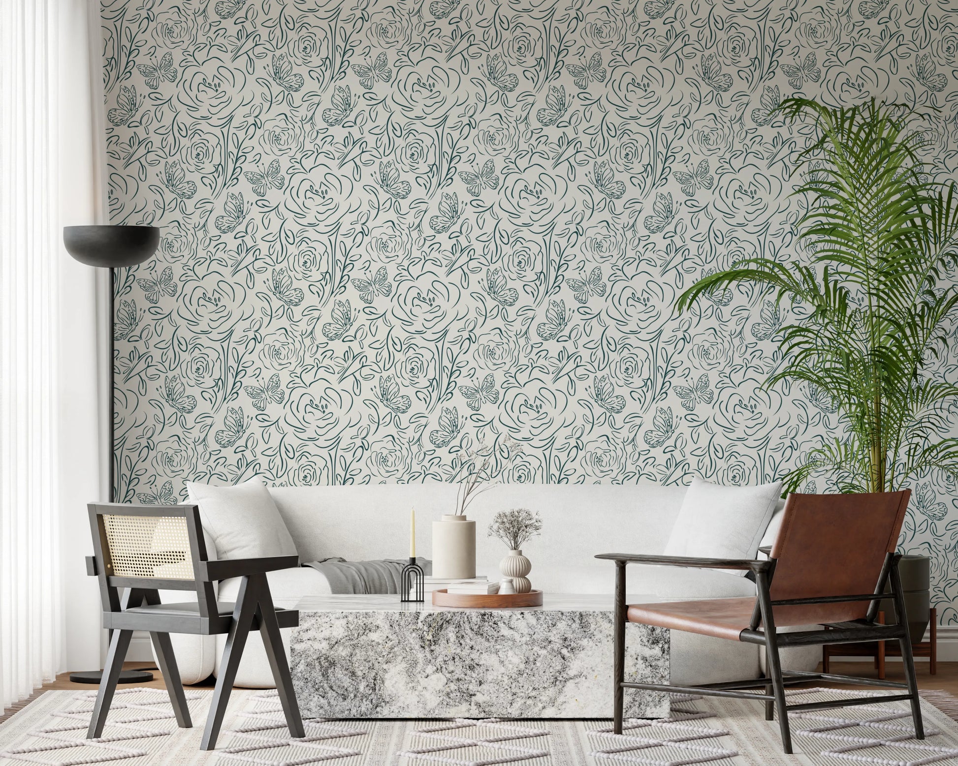 Butterfly Bloom Line Art Wallpaper⁠