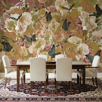 Bring nature indoors with this gorgeous floral design. This wallpaper features a blend of peach, rose, and cream flowers that create a warm, inviting atmosphere. Butterflies add a touch of whimsy and charm. The subtle colour palette makes this wallpaper for walls perfect for a bedroom or living room, while the intricate details add sophistication to a dining room or hallway. Its versatile style complements both modern and vintage interiors.